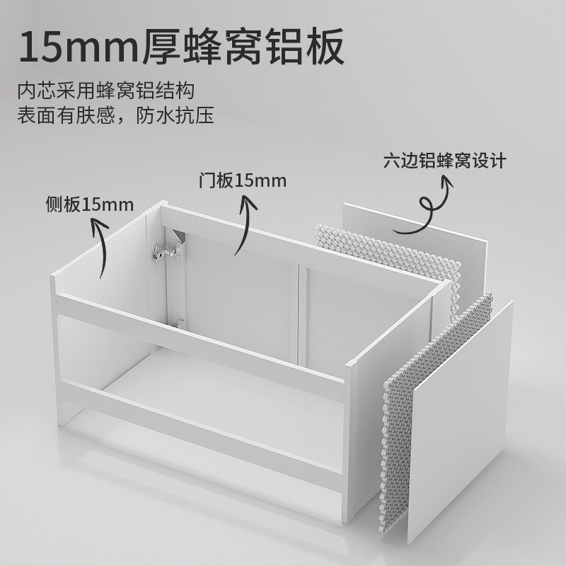 蜂窝铝浴室柜侧边美妆收纳组合卫生间圆弧陶瓷一体洗漱台洗脸盆柜