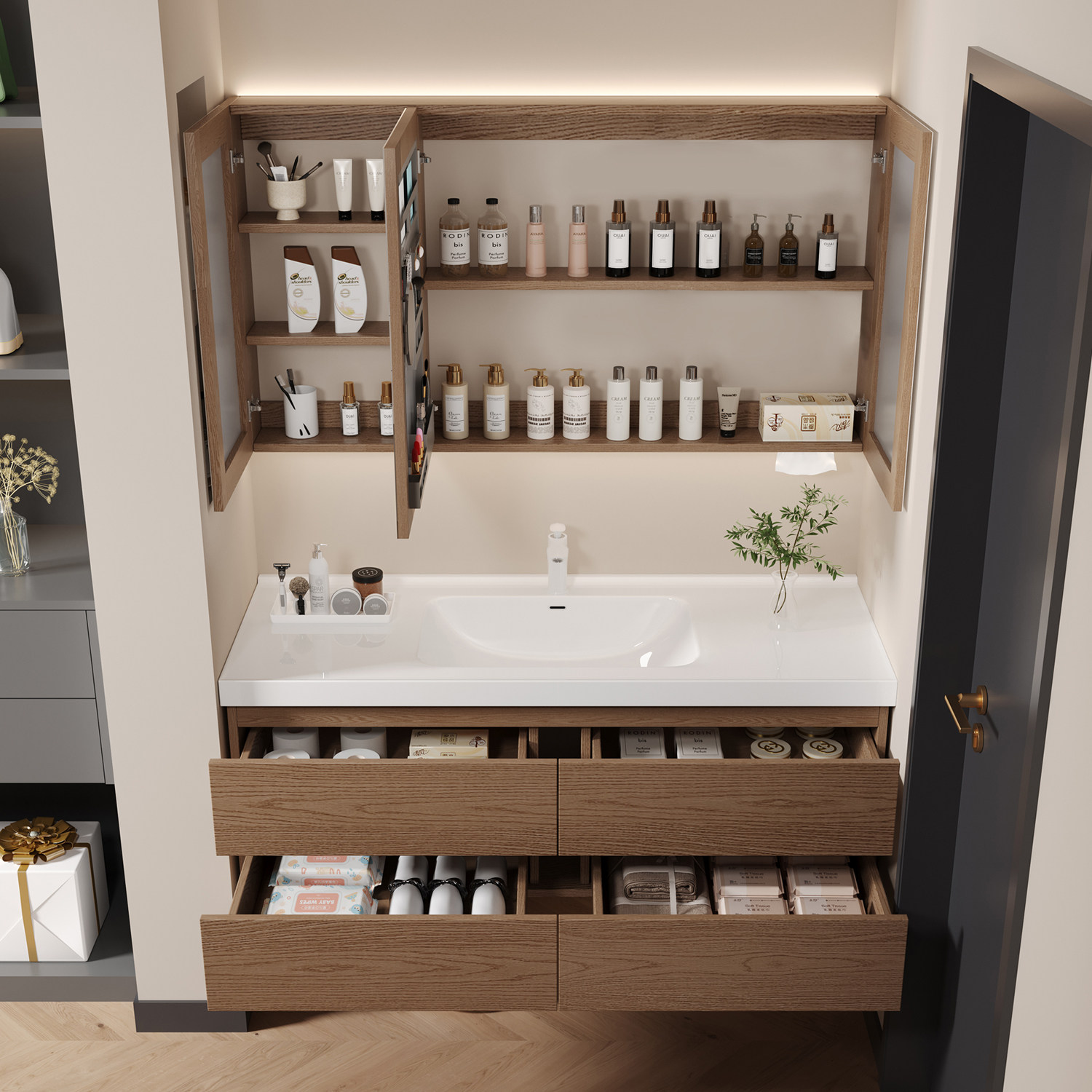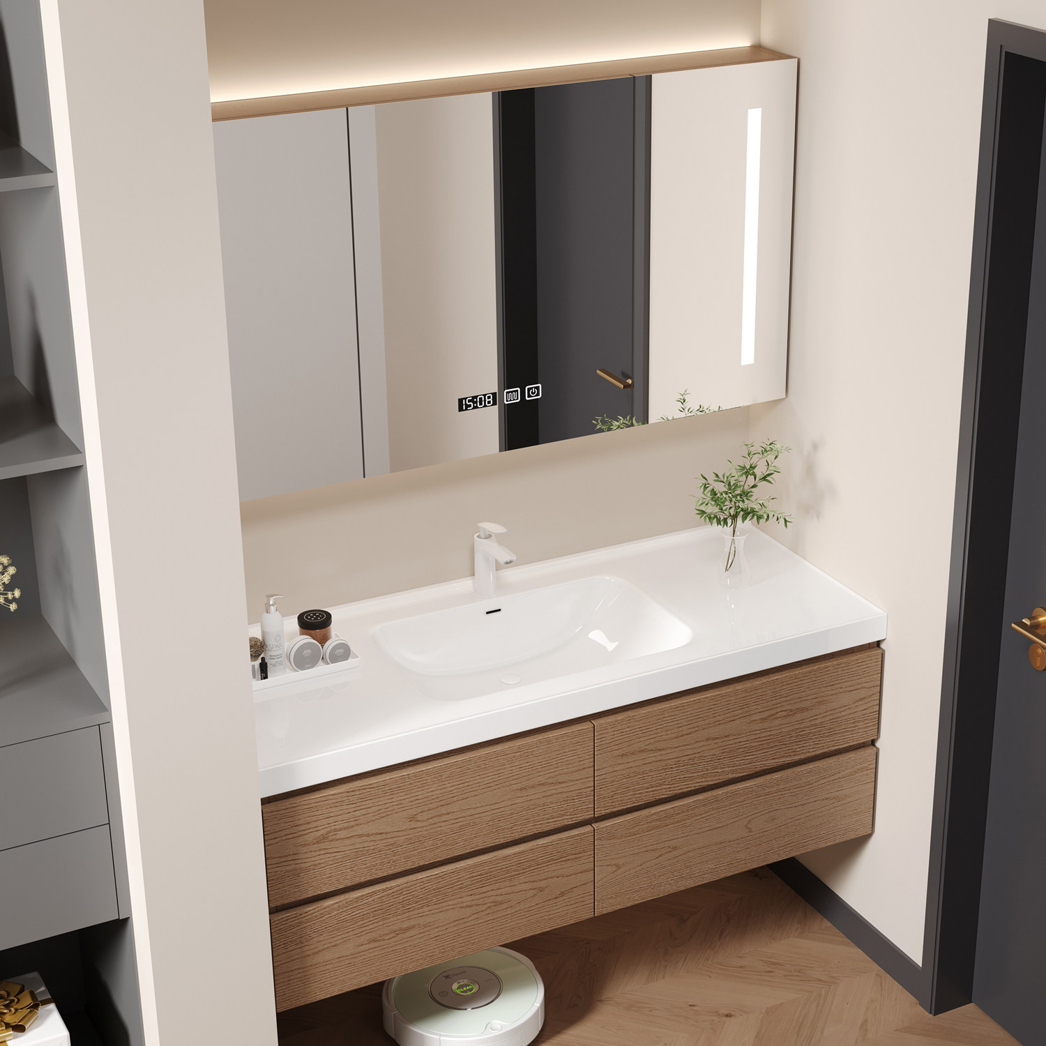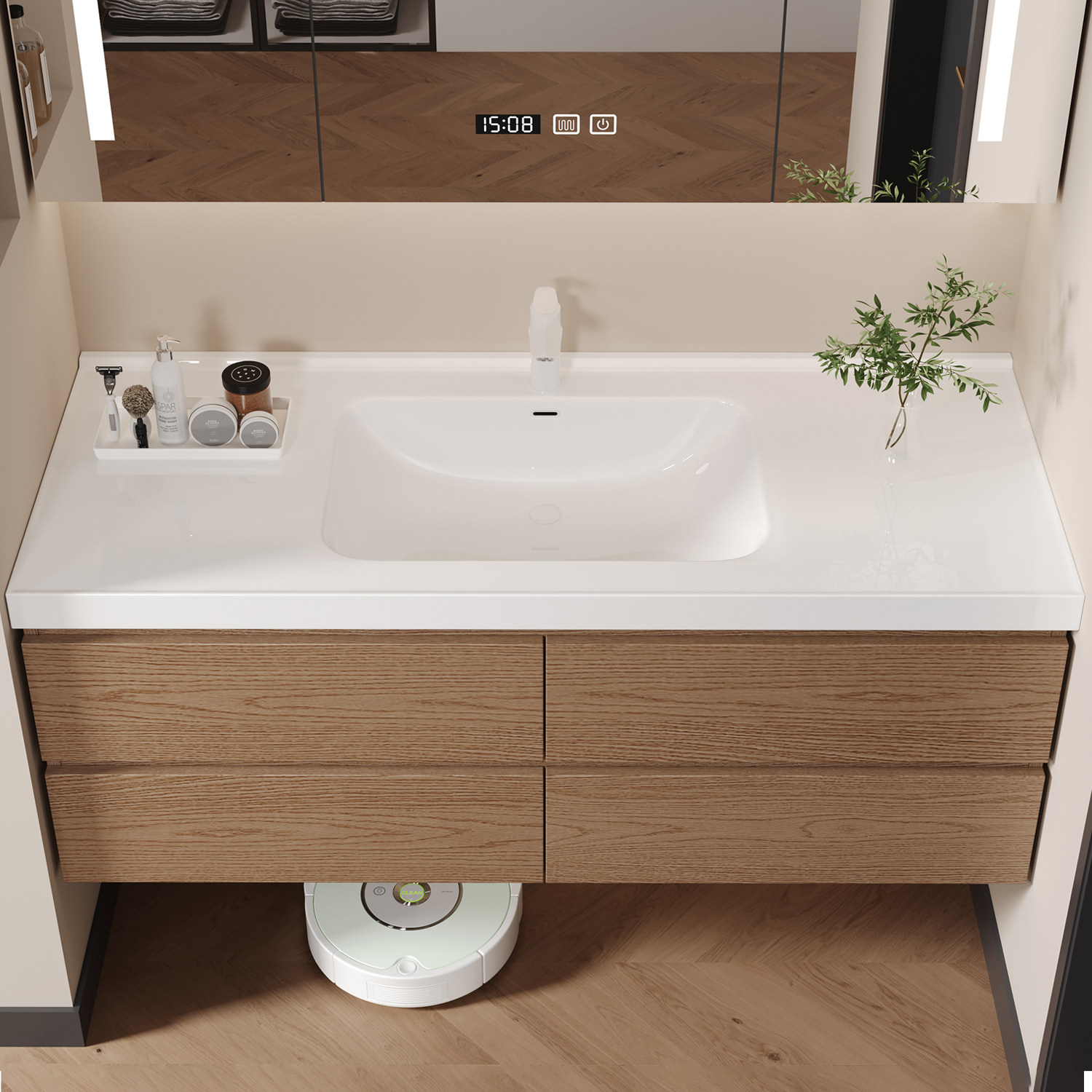 现代简约智能浴室柜组合一体盆卫生间定制收纳洗手脸盆柜洗漱台