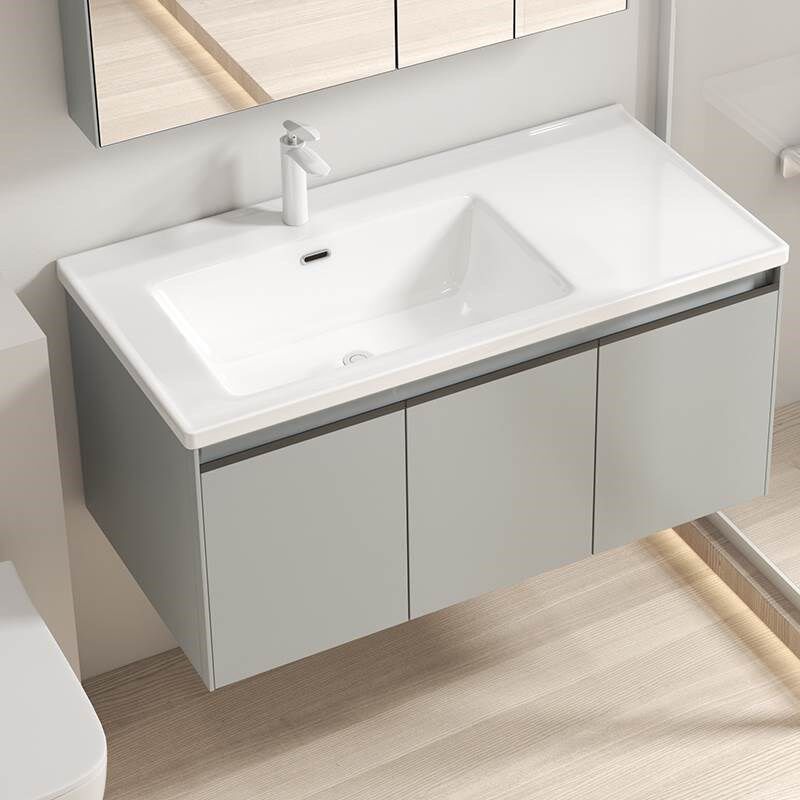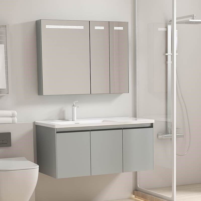淘宝寂宅风浅灰不锈钢浴室柜组合陶瓷一体盆小户型镜柜配合感应灯光