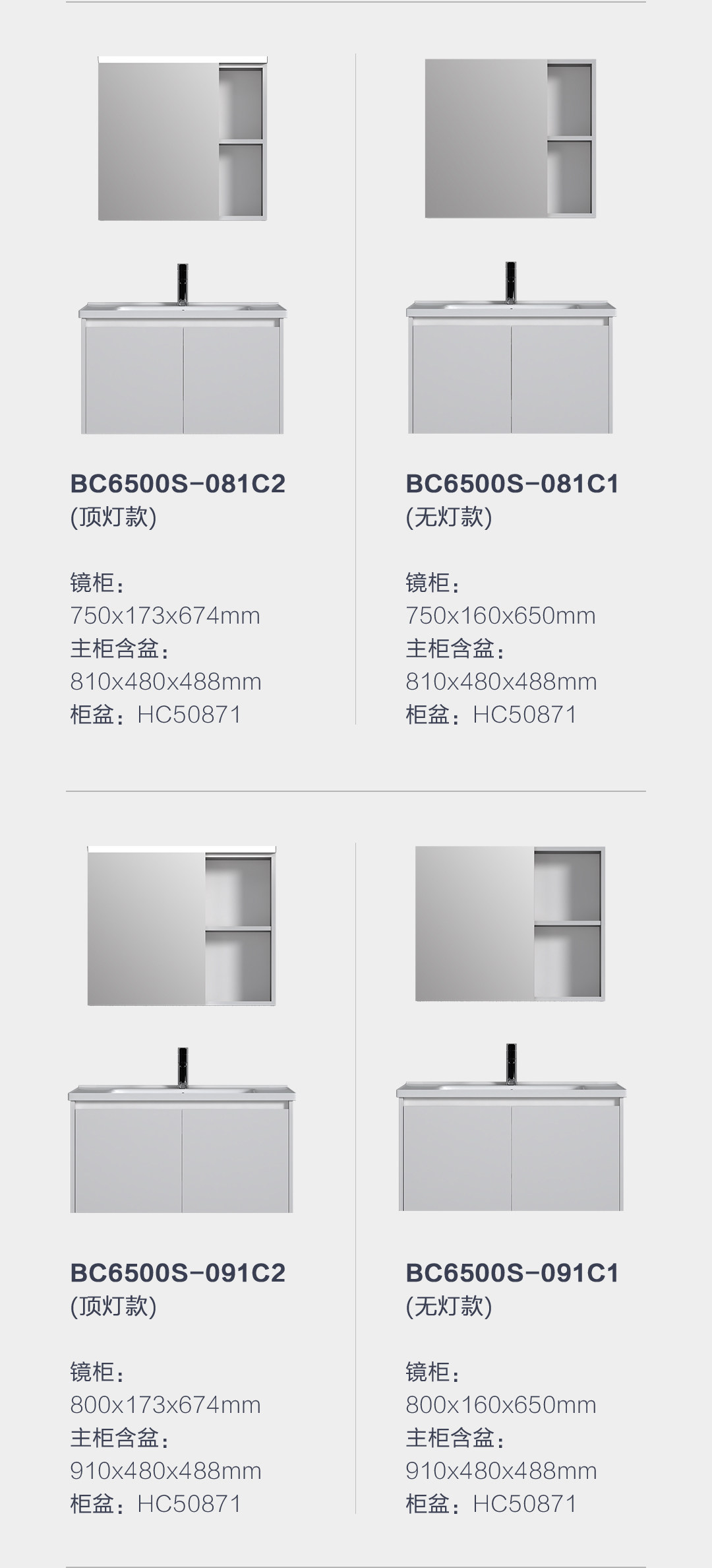 天猫【恒洁】BC6500S现代简约生态浴室柜灰白色一体陶瓷盆