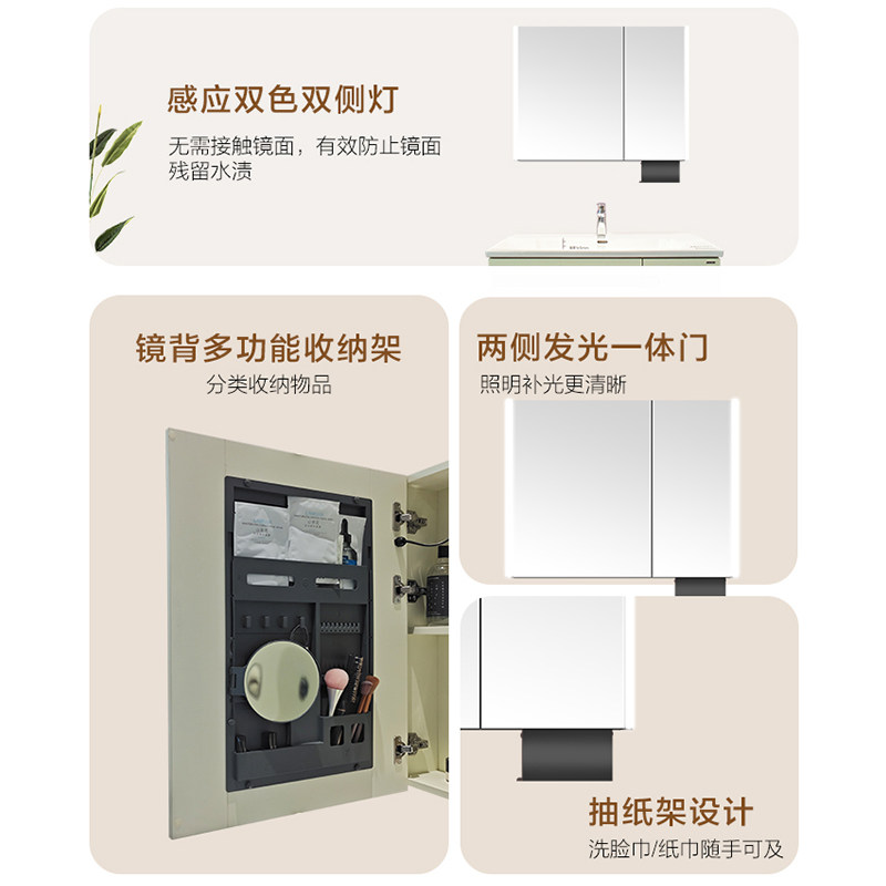 科勒森语肤感智能陶瓷一体盆浴室柜奶油风洗脸盆柜组合挂墙安装