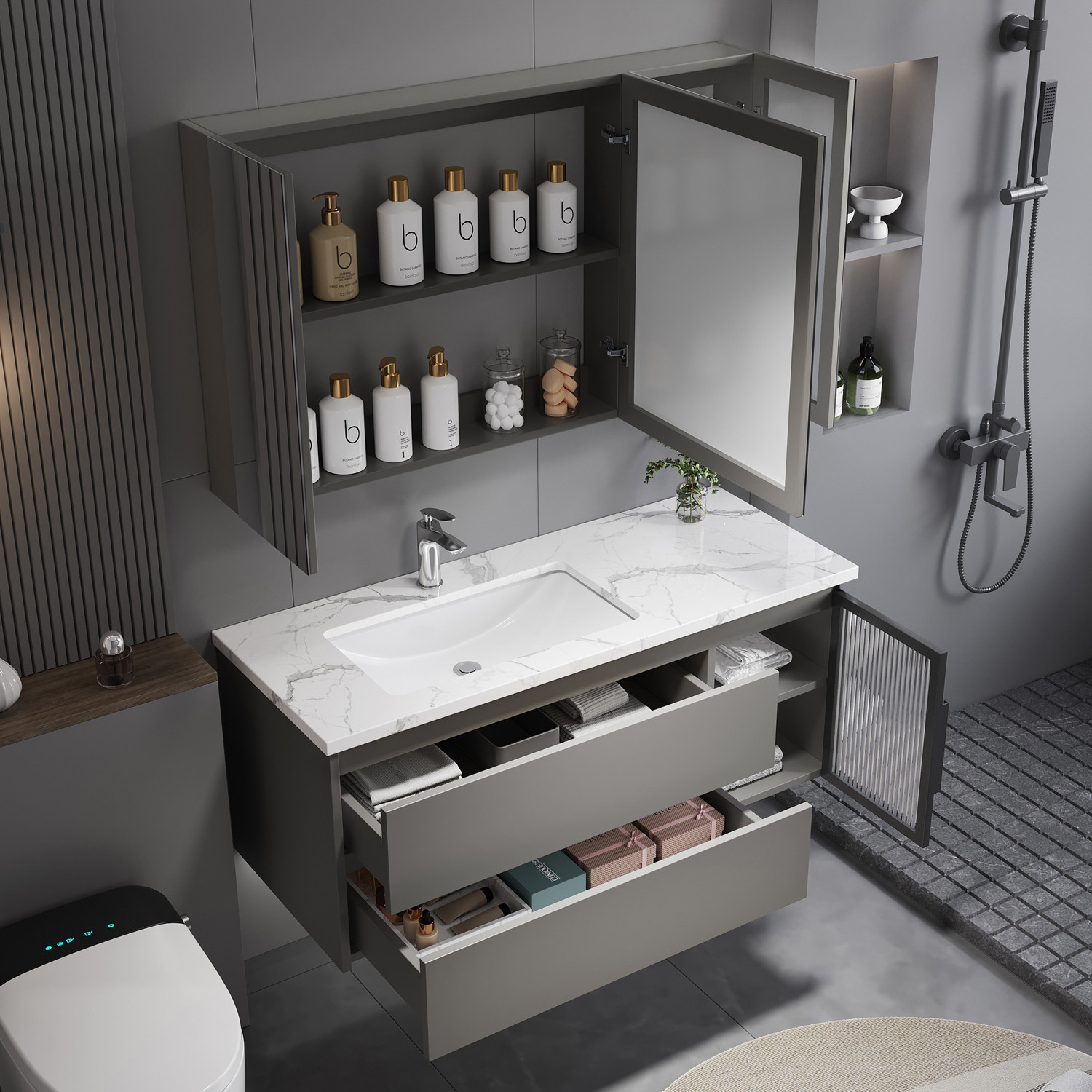 JOMOW蜂窝铝浴室柜组合一体陶瓷盆洗漱台简约现代收纳储物壁挂式