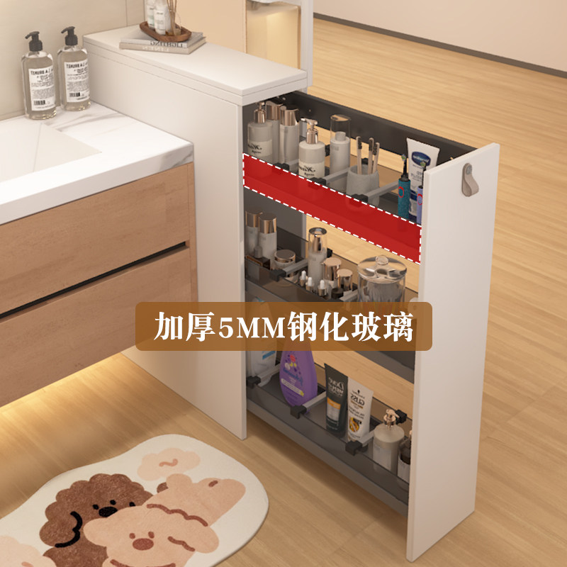 淘宝浴室边柜侧柜窄型开放式卫生间干区洗手柜旁拉篮半墙隔断柜定制
