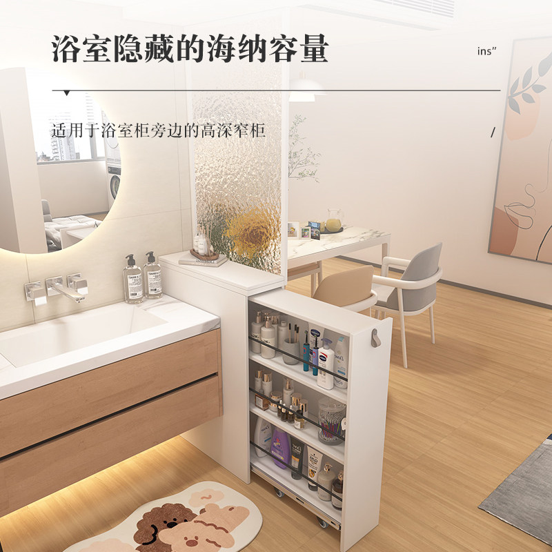 淘夹缝柜置物架抽屉收纳盒式免安装浴室化妆室马桶收纳柜落地缝隙柜