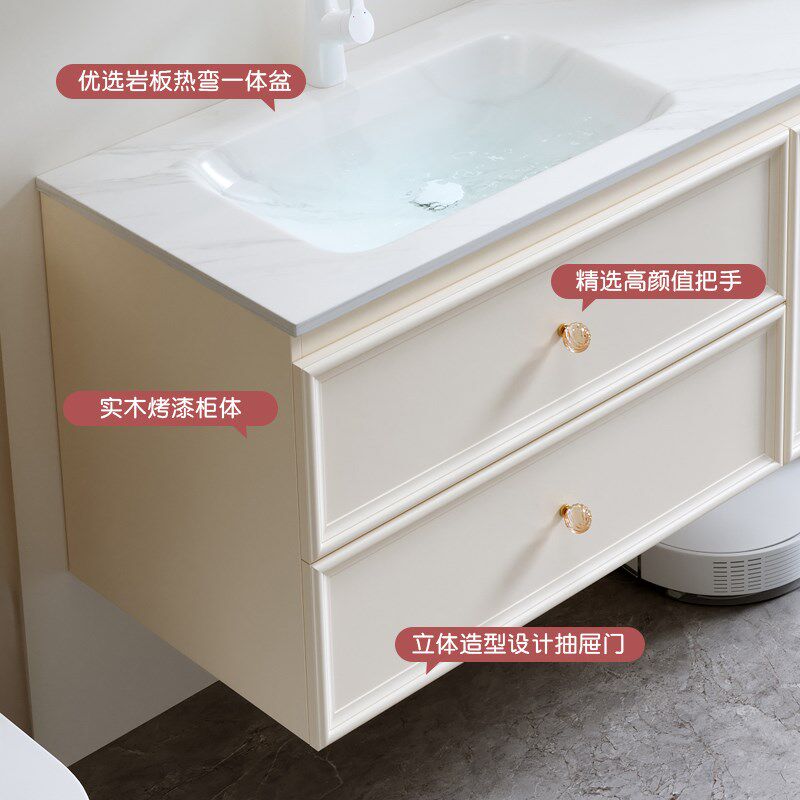 淘法恩莎奶油风浴室柜陶瓷一体盆智能卫生间洗漱台洗手洗脸盆柜组合