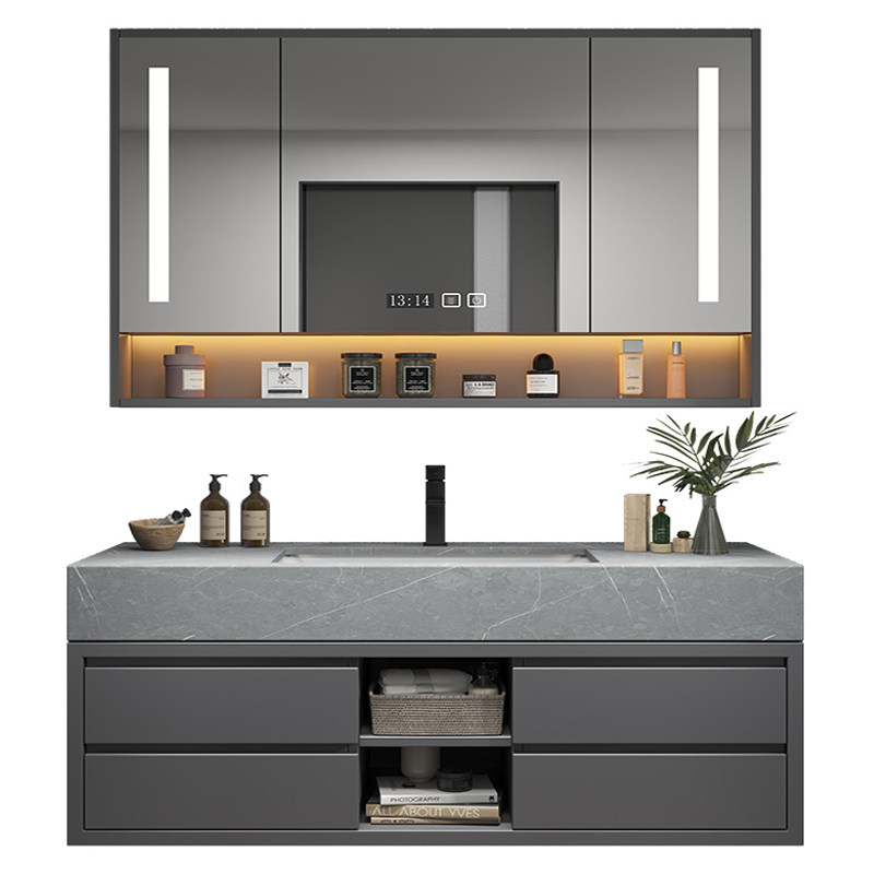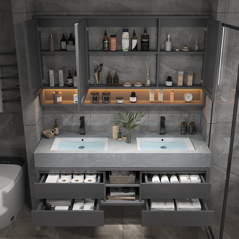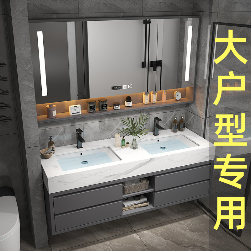 淘宝轻奢岩板浴室柜组合双盆卫浴柜大户型用实木洗漱台一体洗脸洗手池