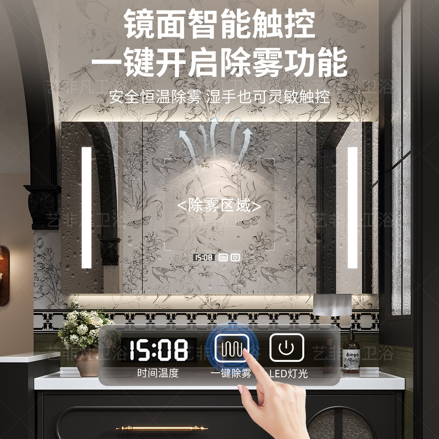 淘防水插座圆弧多功能智能镜柜卫生间挂墙式浴室镜太空铝美妆收纳架