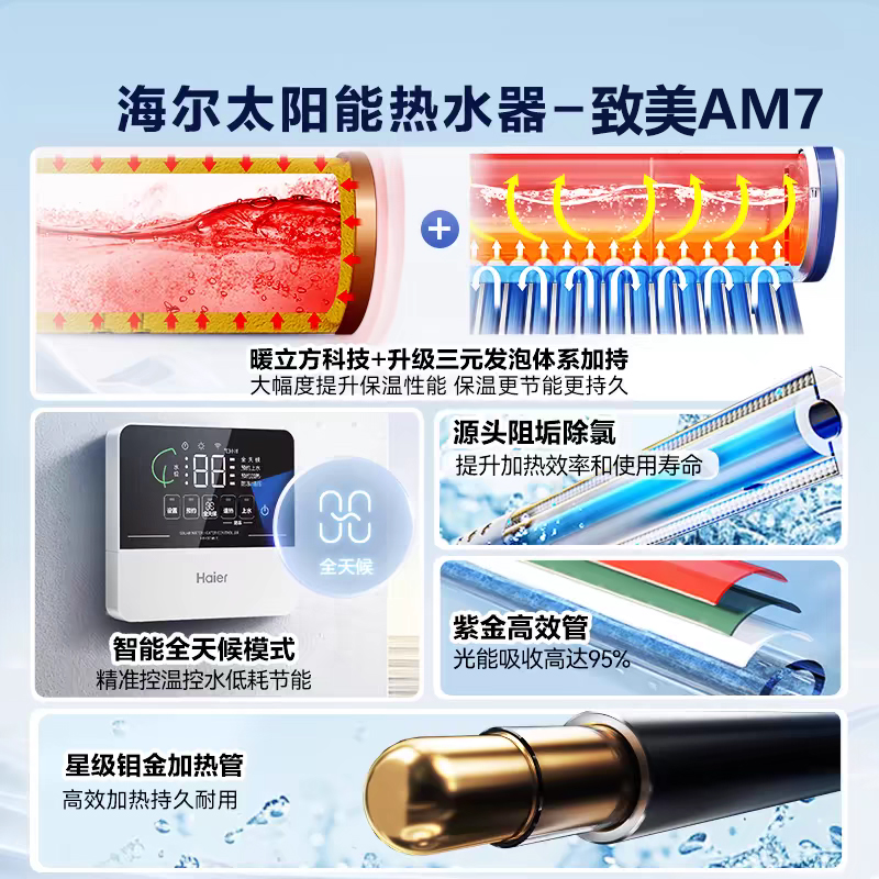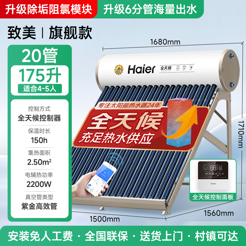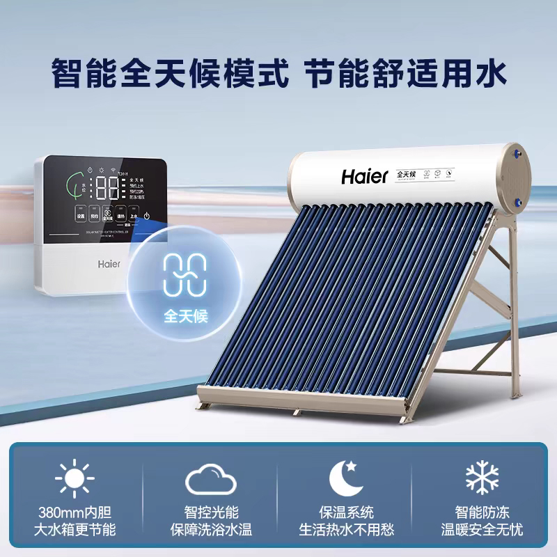 天猫【政府补贴20%】海尔太阳能热水器电加热一体家用真空管集热器+09