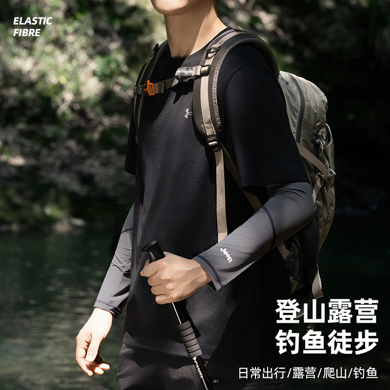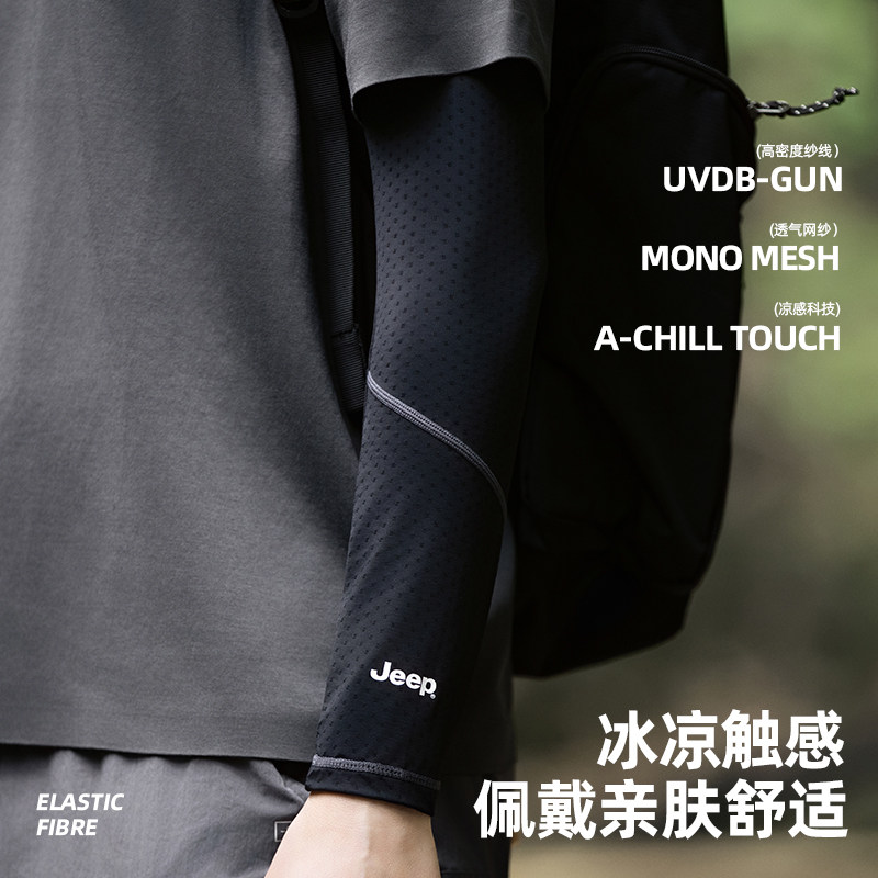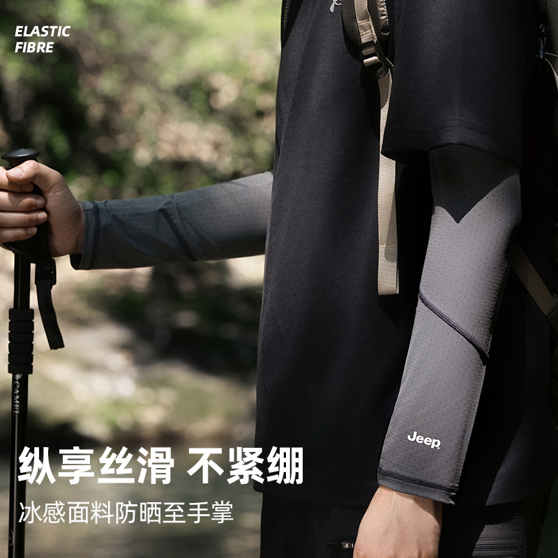 天猫jeep吉普防晒袖套男士夏季冰袖防紫外线冰丝护袖骑行钓鱼遮阳套袖