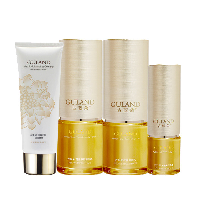 古蓝朵花蜜多能护肤套装,融合天然花蜜精粹与多种植物精华,蕴含洁面啫喱、精华水、乳液、面霜及精华液五大核心产品,专为深度滋润与长效保湿而设计。温和洁面啫喱净澈肌肤不紧绷,精华水迅速渗透补水,乳液轻盈锁水,面霜形成保护膜持久滋养,精华液密集修护,层层递进,构建完整护肤屏障。质地柔润易吸收,适合干燥及缺水肌肤,持续使用可令肌肤水润饱满、细腻柔滑,焕发自然光采。套装搭配科学,协同增效,是日常补水保湿的理想之选,让肌肤全天候享受花蜜般的奢宠呵护。