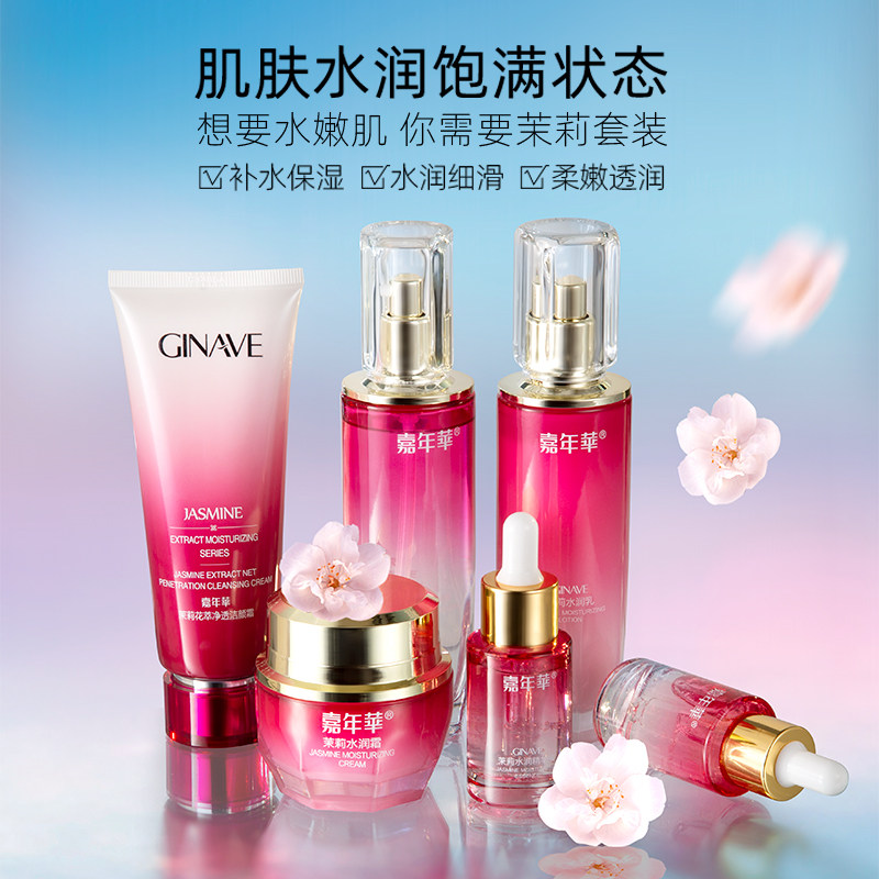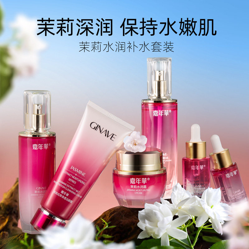 天猫GINAVE嘉年华茉莉补水礼盒面部护肤套装保湿洁面水乳液面霜精华