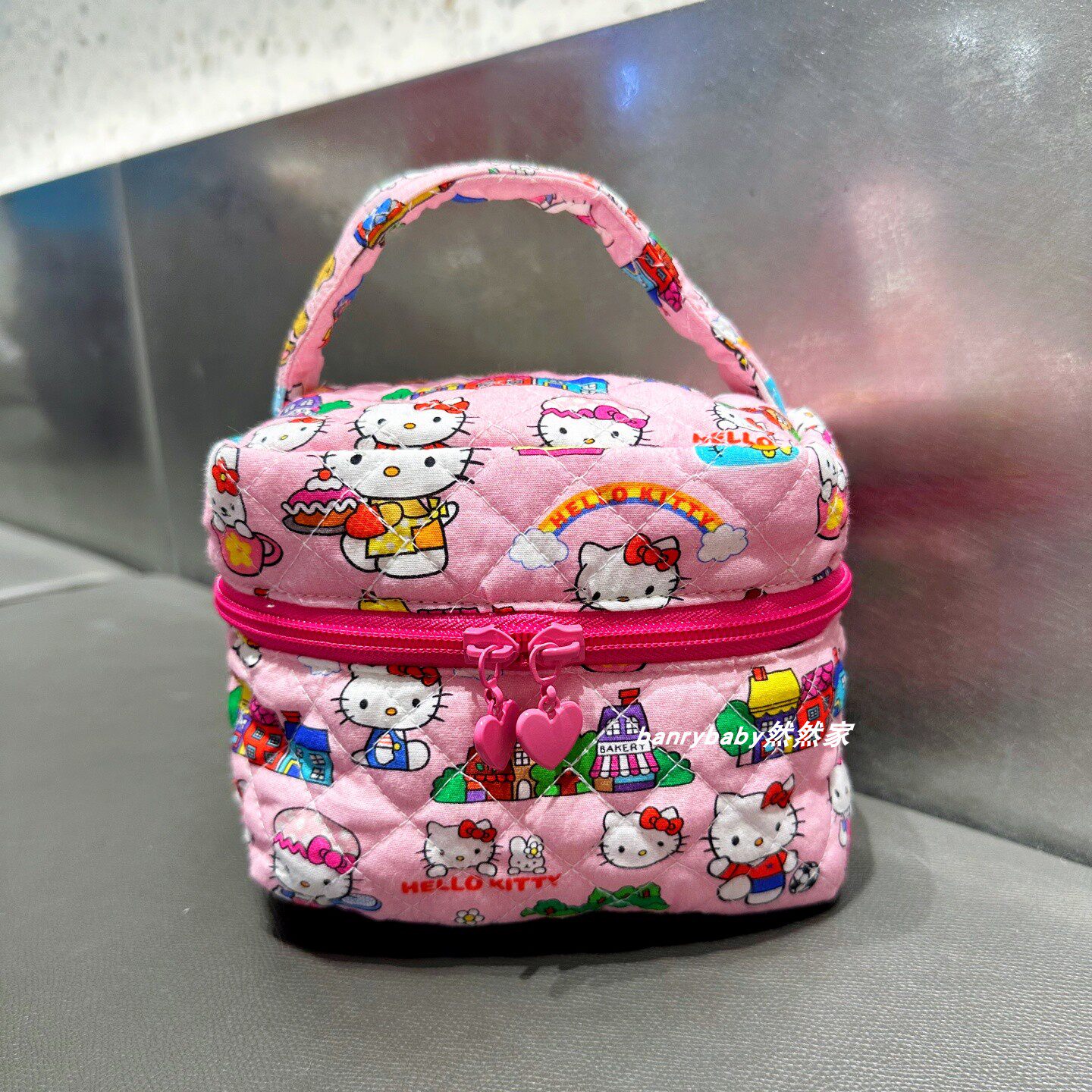 淘宝日系可爱Kitty手作棉布手提化妆包立体洗漱包旅行i收纳包