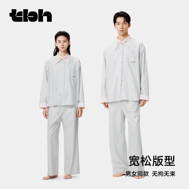 tbh野兽派家居全棉家居服套装熊猫嘭嘭可外穿四季情侣睡衣