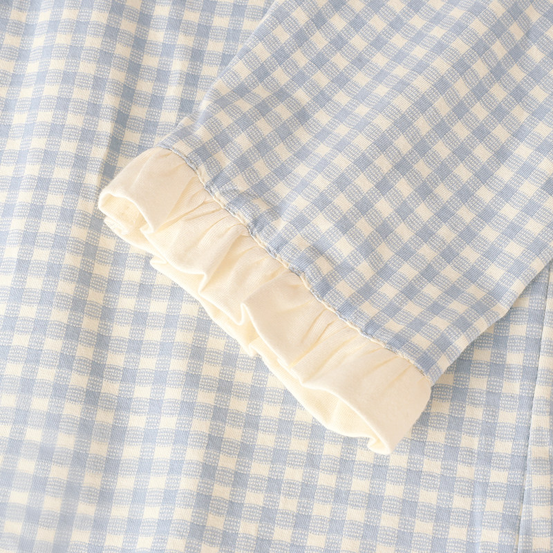 〖铃兰物语〗日系简约格子纯棉情侣睡衣,以清新铃兰为灵感,融合日式极简美学,打造舒适与美感兼具的家居时光。采用100%优质纯棉面料,亲肤透气,柔软亲肤,适合春秋季节穿着。经典格子图案搭配柔和色调,男女同款设计,彰显默契情侣间的温柔互动。长袖版型兼顾保暖与轻盈,宽松剪裁自在无束缚,无论是居家休闲还是甜美小憩皆宜。精致走线工艺,耐穿不易变形,细节之处尽显品质。〖铃兰物语〗不仅是一件睡衣,更是一份关于爱与陪伴的生活仪式感,让平凡日常也充满诗意与暖意。