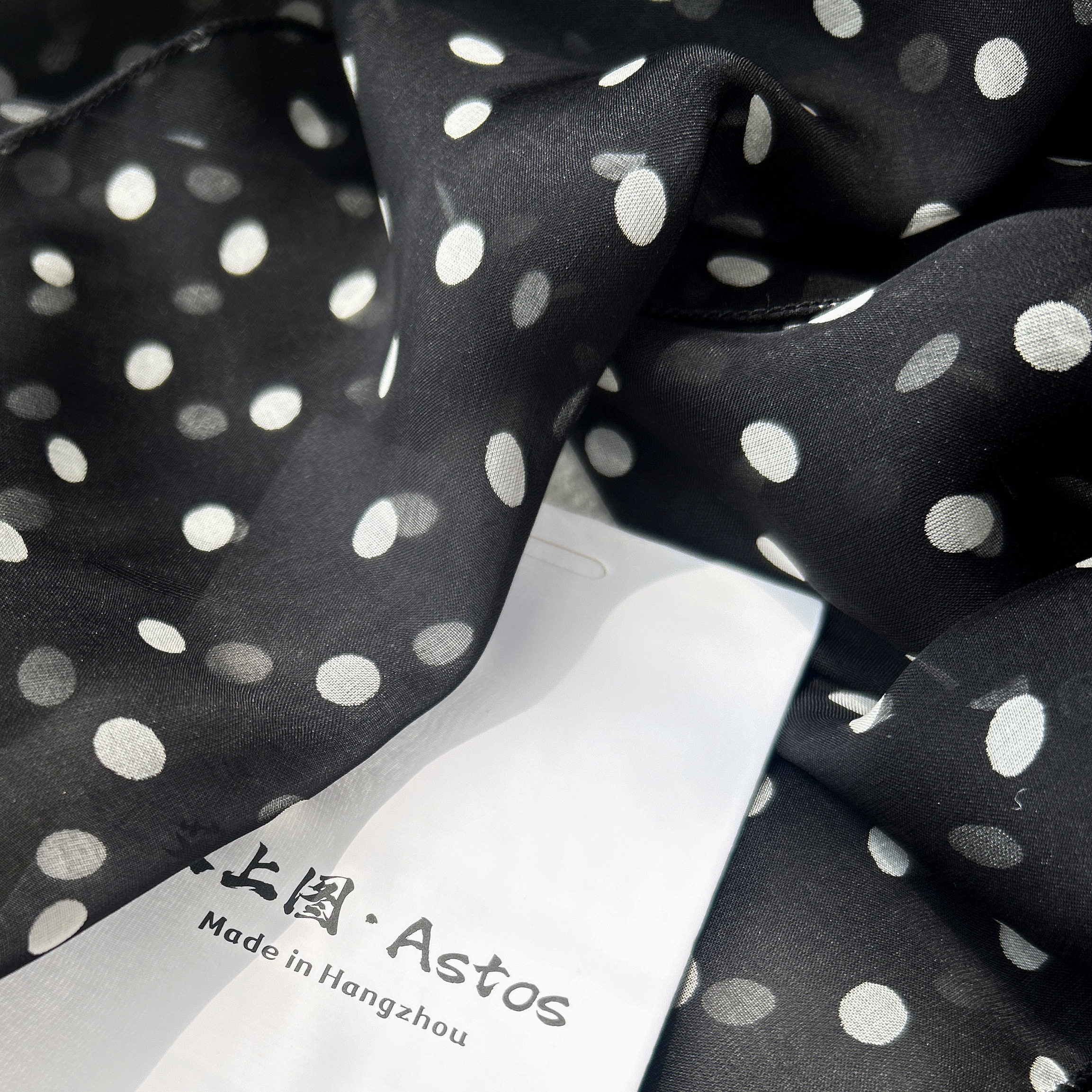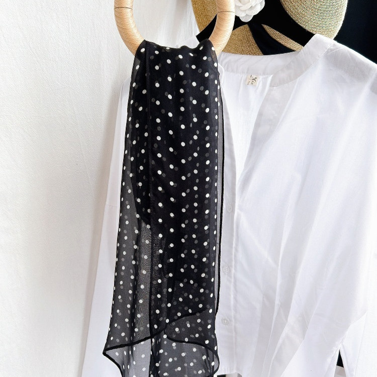 淘宝桑蚕丝丝巾黑白色复古波点围巾森女文艺圆点100%真丝长巾防晒披肩