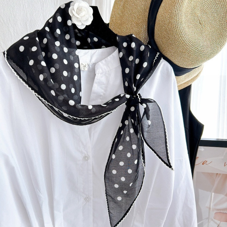 55棉质小方巾丝巾女春秋柔软透气百搭清新波点装饰领巾头巾薄围巾