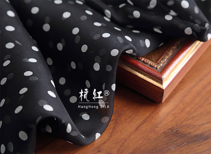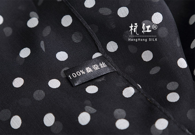 淘宝丝巾黑白波点圆点长款真丝围巾100%桑蚕丝女披肩春秋冬季夏季
