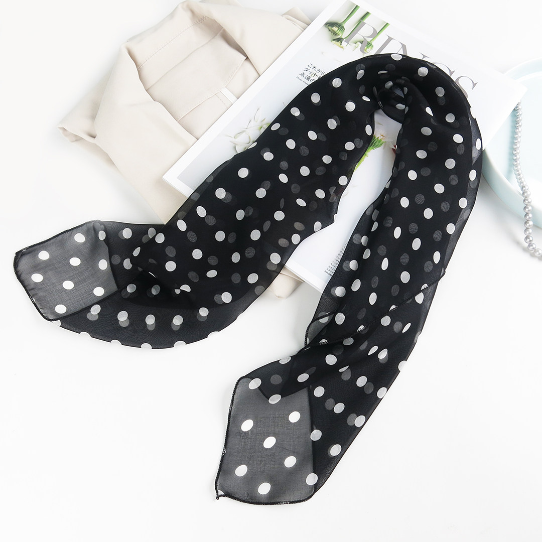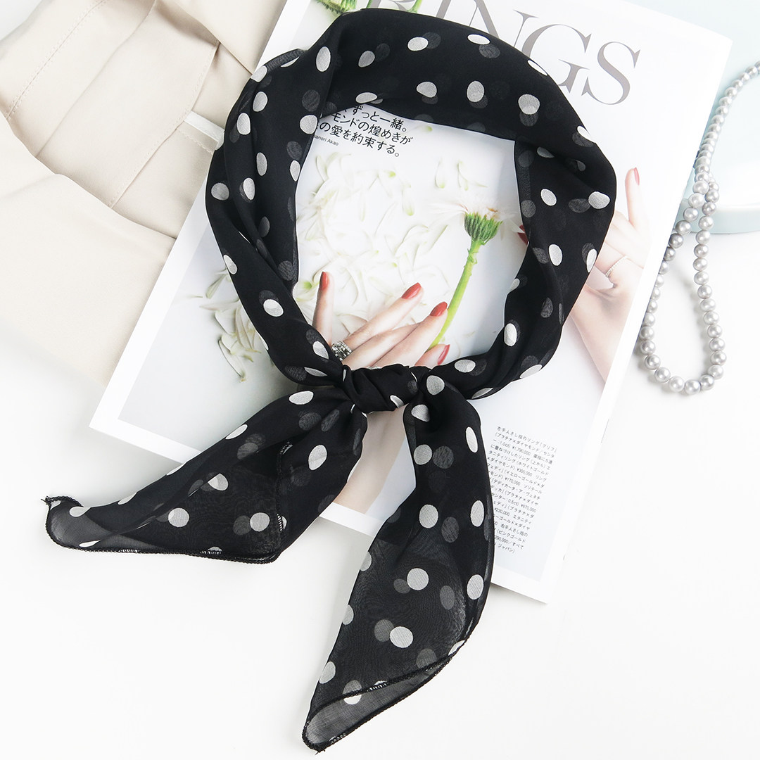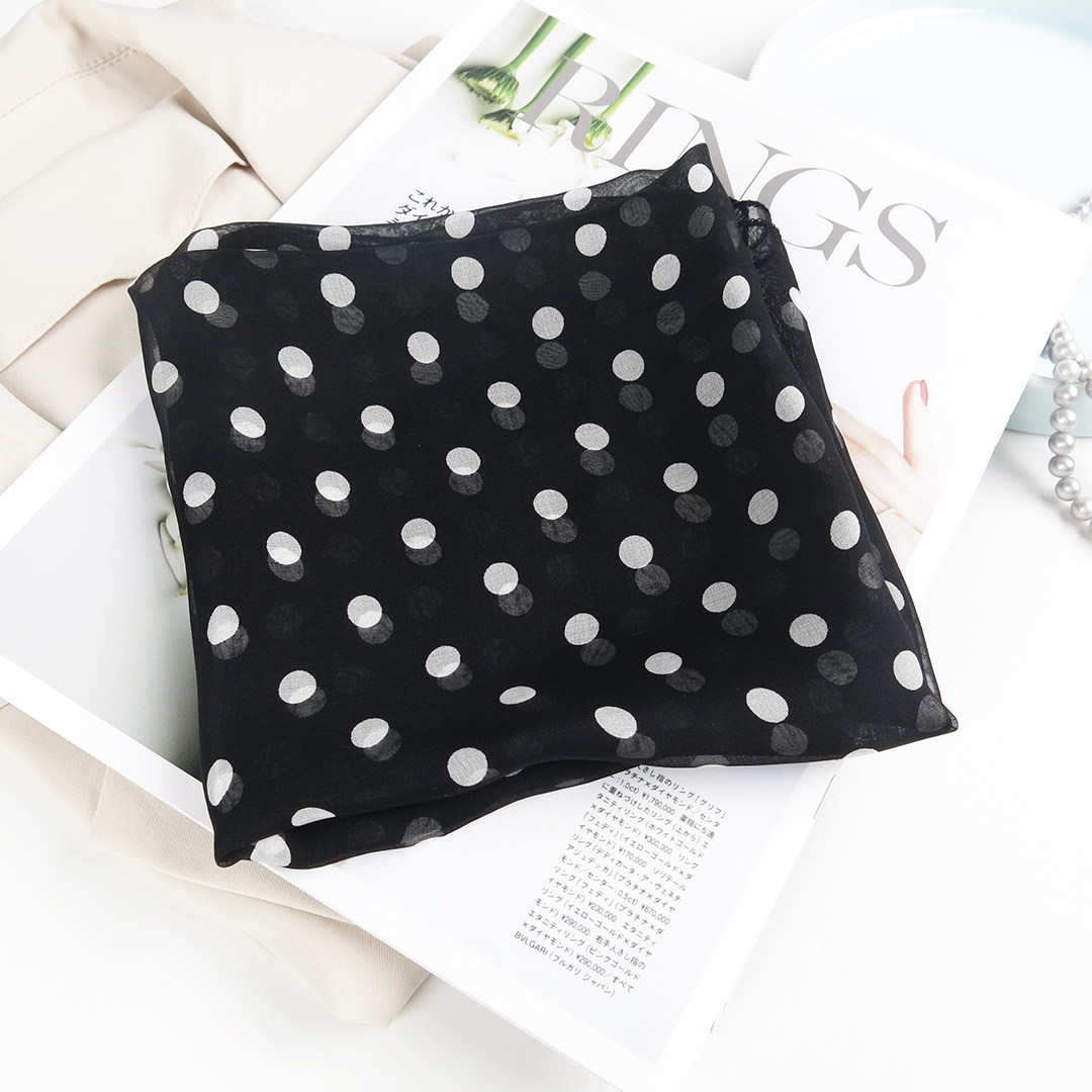 55棉质小方巾丝巾女春秋柔软透气百搭清新波点装饰领巾头巾薄围巾