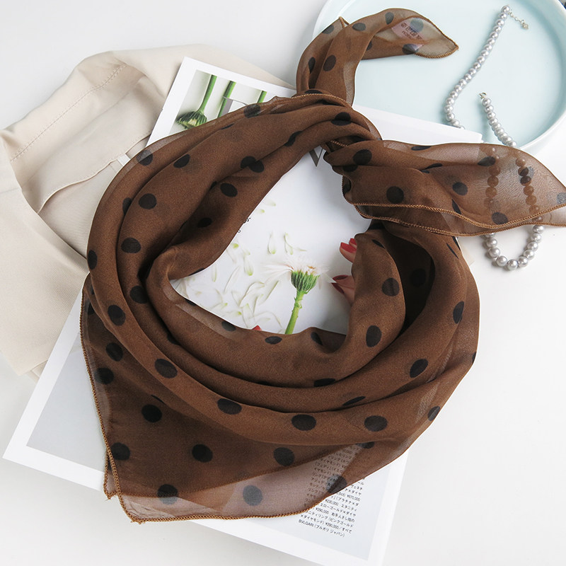天猫真丝小波点小方巾女纱巾百搭时尚小围巾桑蚕丝薄围巾春秋冬季丝巾