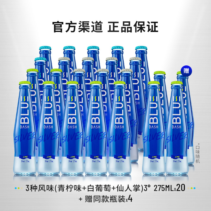 天猫布鲁大师BLUE DASH气泡酒0糖0脂3度炫银果酒预调鸡尾酒组合275ML
