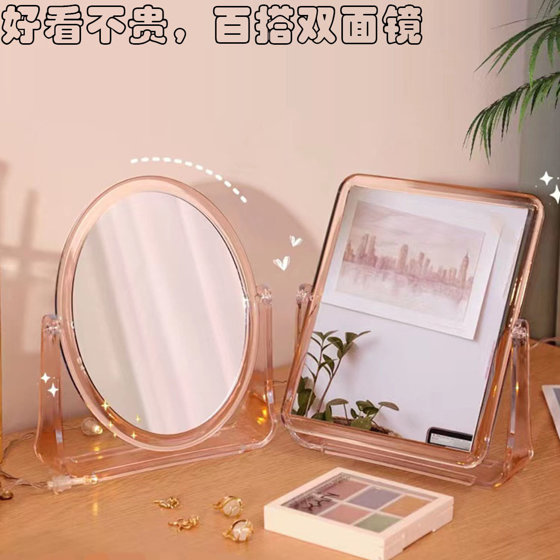 淘宝【双面镜360度可旋转】化妆镜子宿舍用便宜高颜值卧室桌面学生