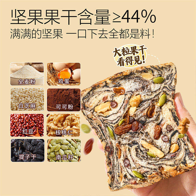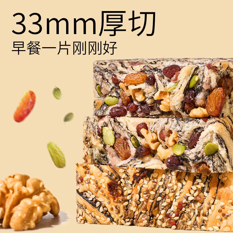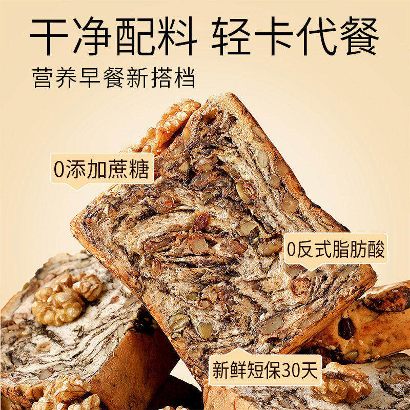 天猫全麦坚果厚切吐司面包0无蔗糖脂减低肥营养代餐零食早餐整箱速食