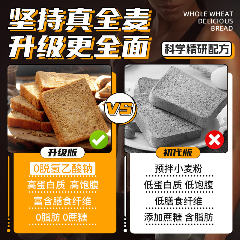 天猫木马季全麦面包0脂无糖精饱腹粗粮无添加脱氢营养健身吐司零食品