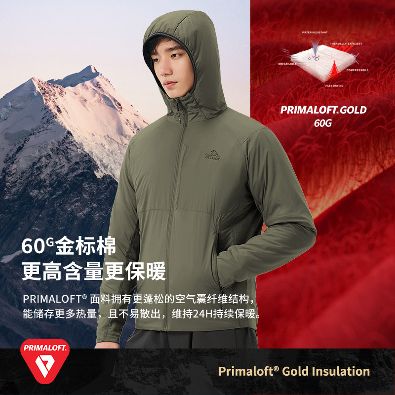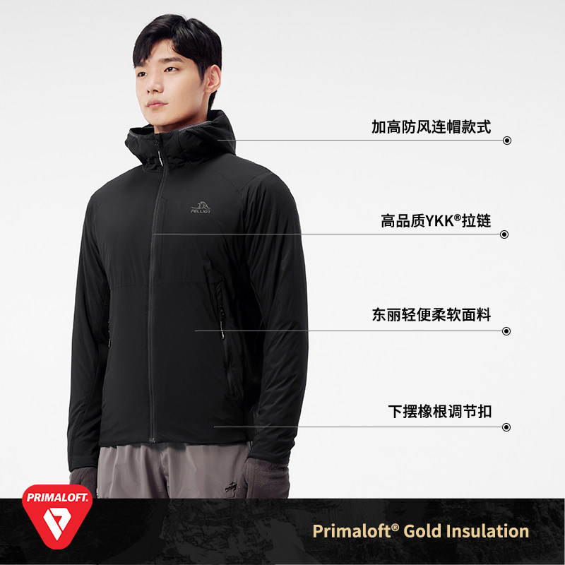 【P系列】伯希和Primaloft金标P棉服男款,专为春季户外设计,融合轻量与保暖科技。采用Primaloft Gold金标填充,具备卓越的保暖性与湿气管理能力,潮湿环境下仍保持高效保温。外层防风防泼水面料,有效抵御春风与微雨,兼顾透气舒适。连帽设计增强防护,整体剪裁修身轻便,可轻松收纳,适合徒步、露营及日常通勤。简约配色与功能性细节相得益彰,展现专业户外美学。P系列以科技赋能探索,是春日轻装出行的理想之选。