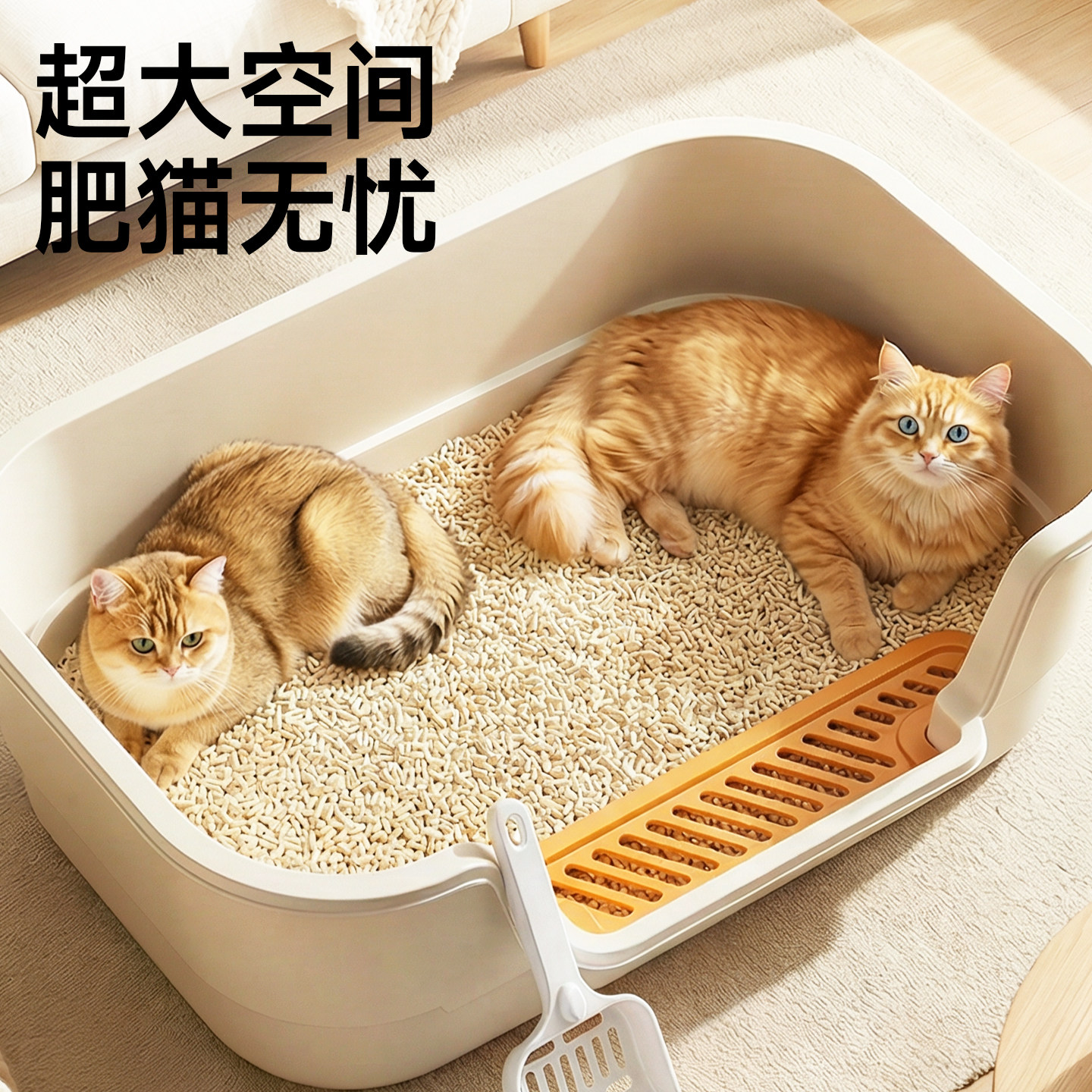猫砂盆超大号防外溅全开放式半封闭厕所布偶缅因特大号巨大猫沙盆