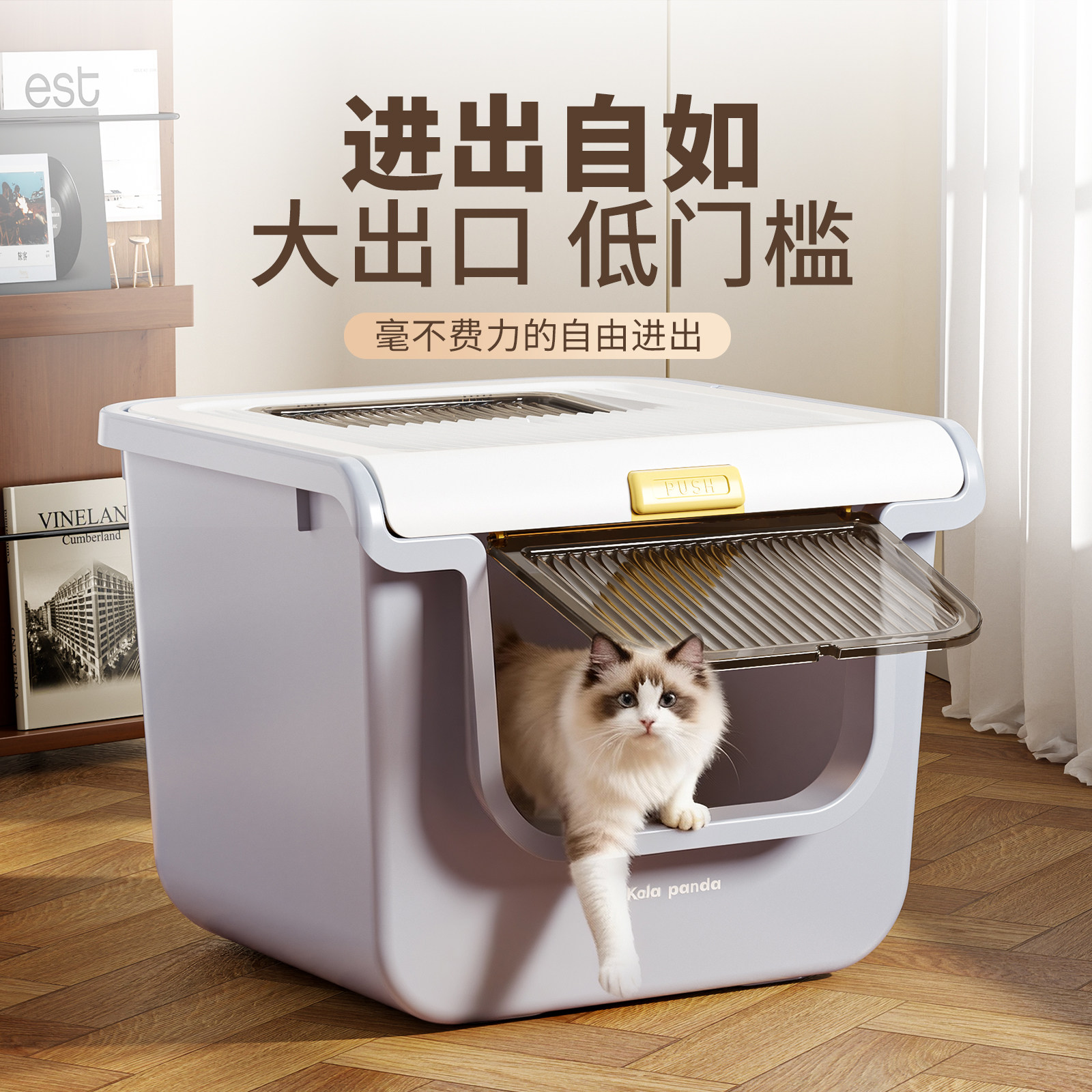 淘猫砂盆大容量超大号防外溅全开放式半封闭厕所特大猫沙盆一体式
