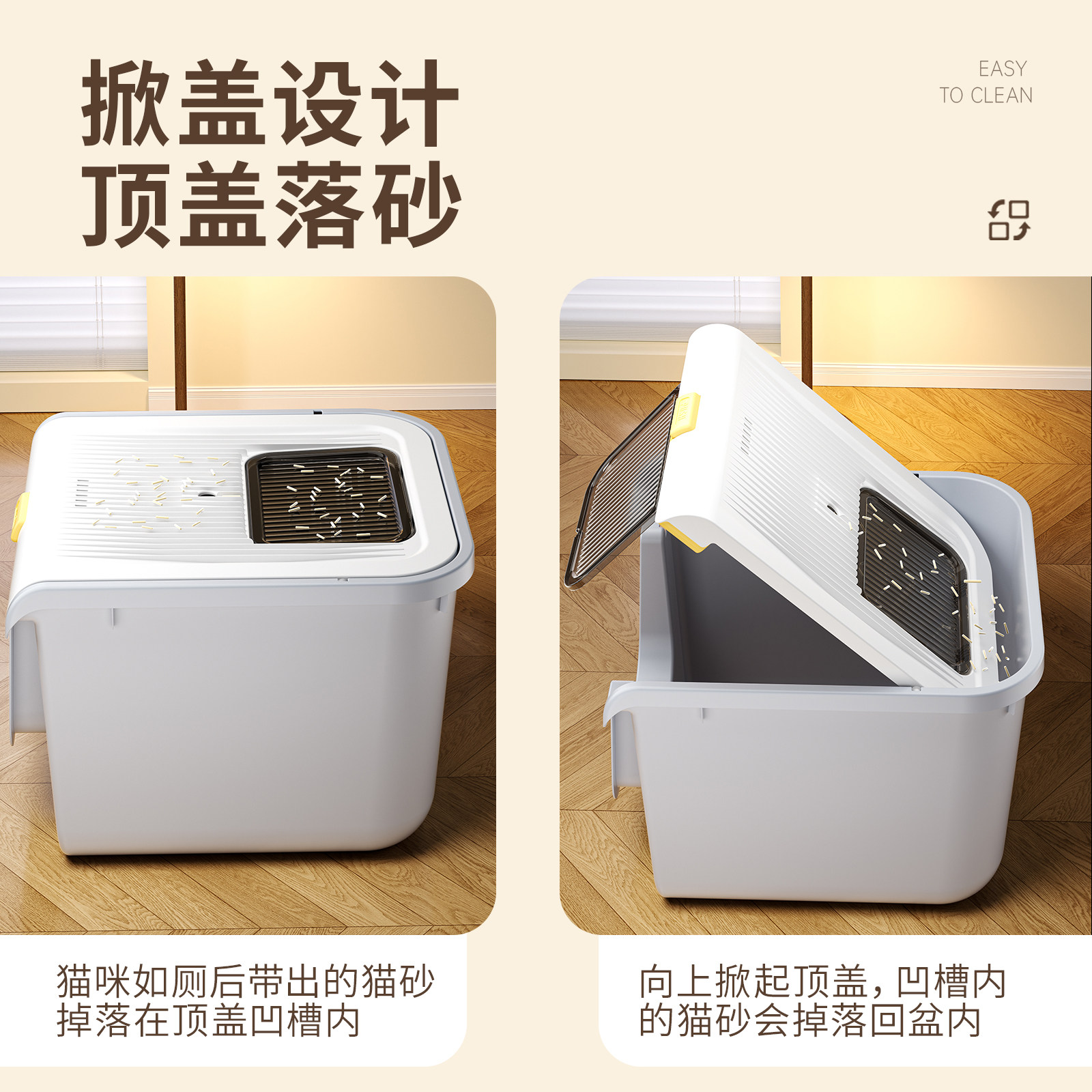 这款全封闭式超大号猫砂盆专为多猫家庭或大型猫咪设计,采用顶入式一体结构,有效防止猫砂外溅,保持家居整洁。宽敞的内部空间让猫咪如厕更舒适,减少抵触情绪。全封闭设计搭配活性炭过滤层,强力吸附异味,显著提升防臭效果。顶部入口搭配可拆卸踏板,方便猫咪进出,同时阻挡带出的猫砂。材质环保耐用,易清洁打理,底部防滑设计稳固安全。整体造型简约美观,适配多种家居风格,是提升猫咪如厕体验与居家卫生的理想选择,让养宠生活更轻松、更清新。
