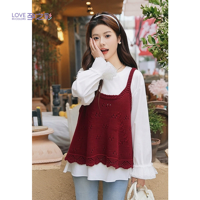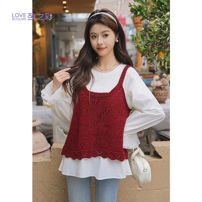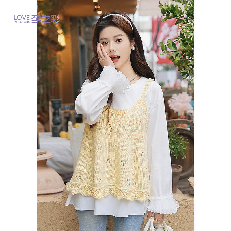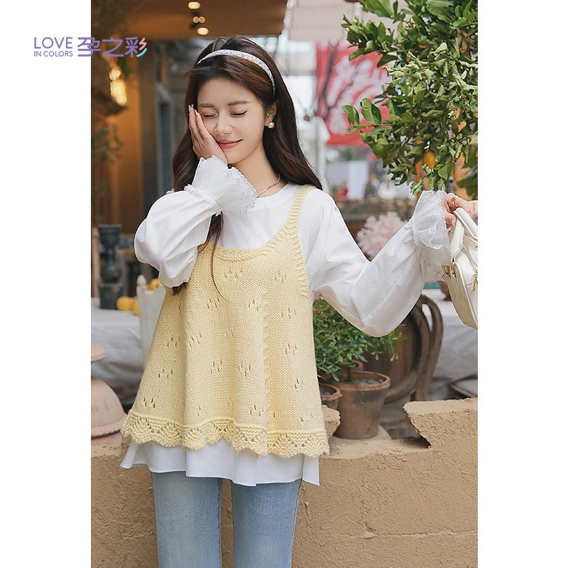 天猫孕之彩孕妇春季新款套装洋气A字吊带+雪纺衫高级上衣两件套马甲女