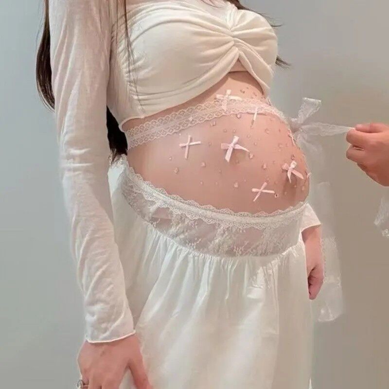 淘宝影楼新款孕妇照服装白色蕾丝拼接孕妈咪大肚照写真拍照摄影连衣裙