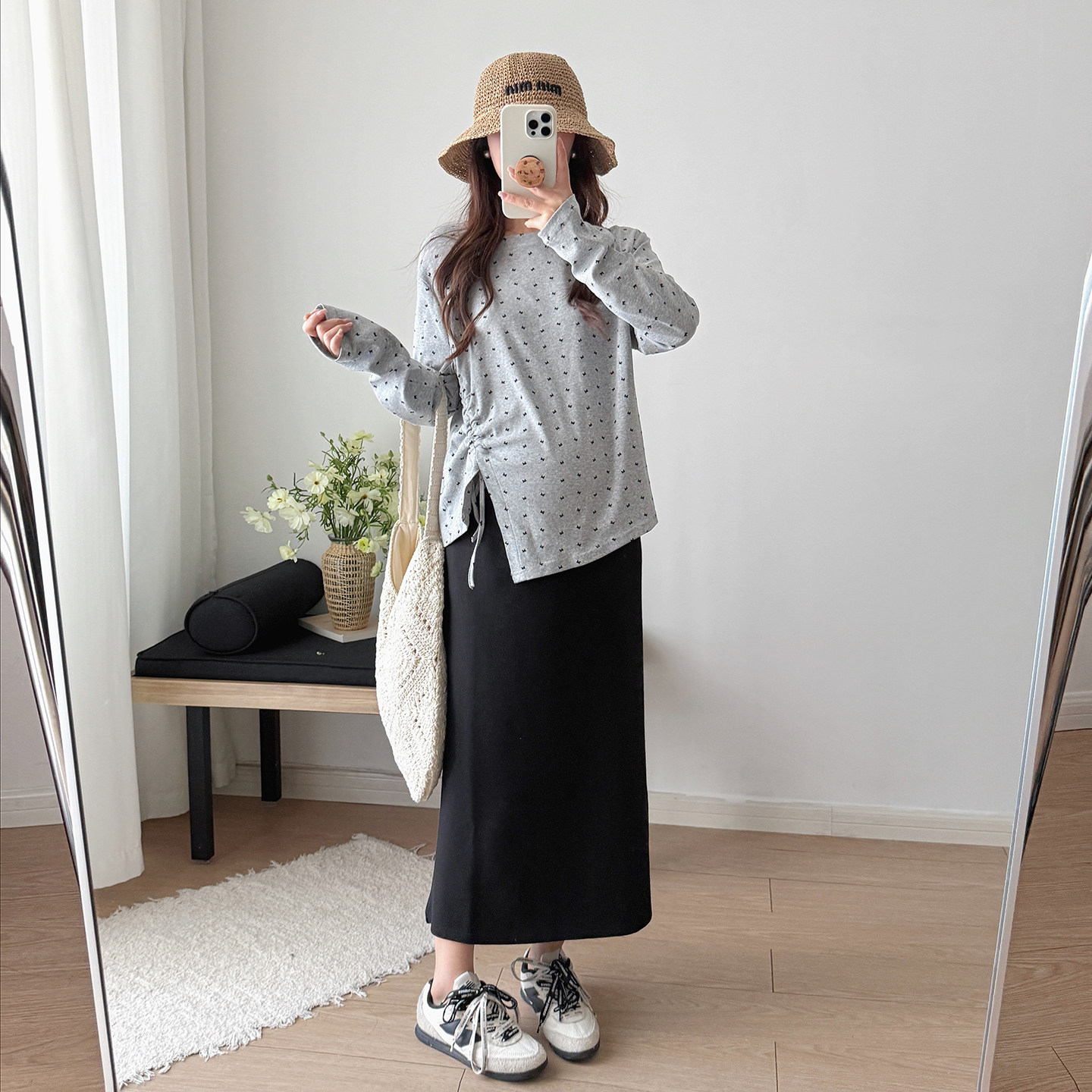 淘孕妇套装春秋2026新款韩版潮妈灰色宽松长袖内搭上衣裤子两件套女