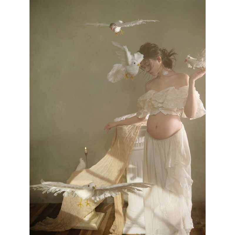 这款专为孕妈咪设计的新款法式油画风艺术照摄影服,融合了复古优雅与纯欲美学,打造浪漫而高级的视觉体验。采用柔滑垂坠的丝质面料,搭配蕾丝花边、复古束腰与微透薄纱设计,既凸显孕期柔美曲线,又散发温柔知性气质。色调以莫兰迪色系为主,如奶油白、雾粉、浅咖等,营造如19世纪欧洲油画般的静谧氛围。整体造型兼具法式慵懒与艺术感,适合在影棚或外景拍摄,定格孕期独特魅力,让每位准妈妈在镜头前展现自信、优雅与母性光辉,成就一组兼具艺术性与情感温度的经典写真。