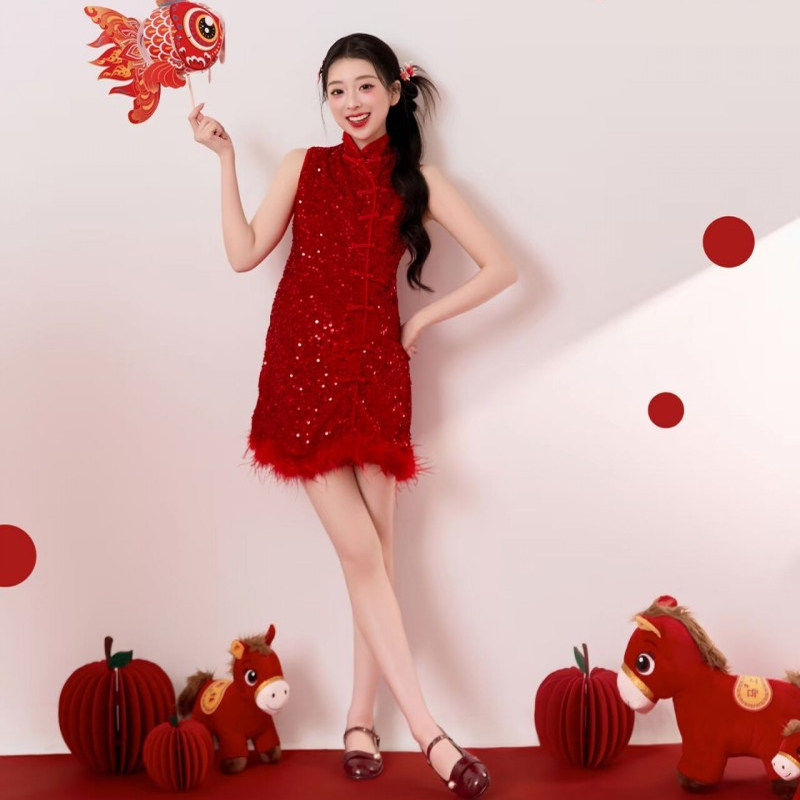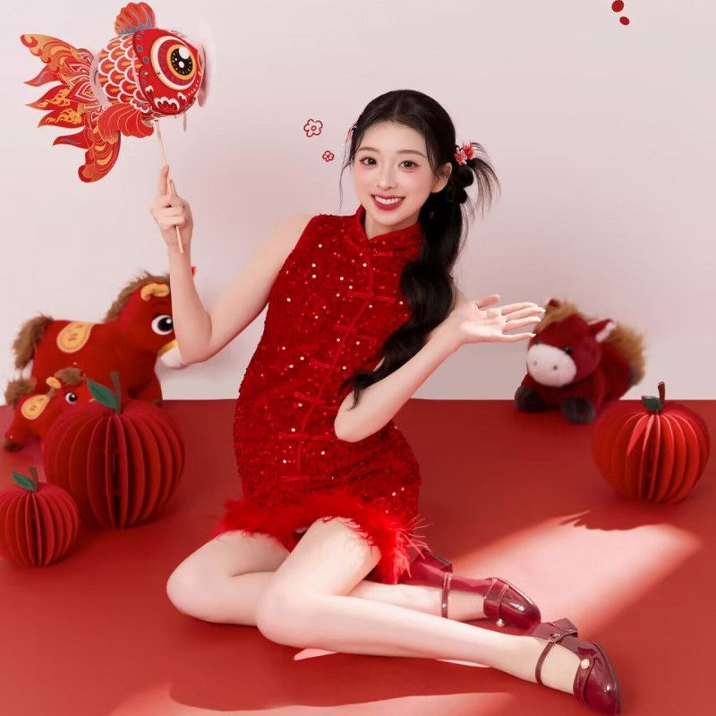 新年国潮复古孕妇写真服饰,融合传统中国风与现代时尚元素,专为孕妈打造优雅艺术照。精选亮片刺绣旗袍,采用高弹舒适面料,贴合孕期身形,凸显柔美曲线。设计上汲取民国旗袍精髓,立领盘扣、斜襟收腰,搭配金线牡丹或祥云图案,喜庆又典雅。亮片在灯光下熠熠生辉,增添节日氛围,完美契合新年主题。无论是室内棚拍还是古风场景,都能展现孕妈温婉气质与独特魅力。既保留东方韵味,又兼顾孕期舒适,是记录孕育美好时光的理想之选,让孕妈在镜头前绽放自信光彩。