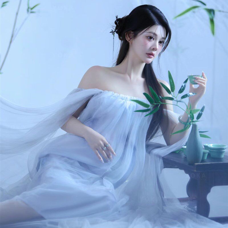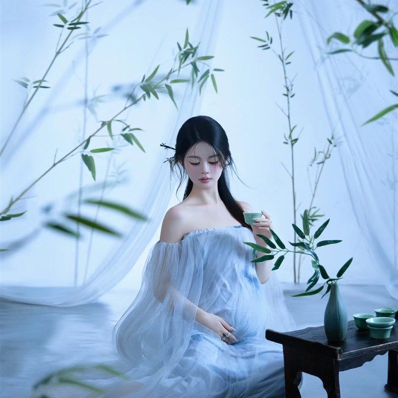 这款新中式复古水墨画抹胸裙礼服,专为孕期妈咪打造,融合传统东方美学与现代孕照艺术。裙身采用轻盈飘逸的真丝或雪纺面料,以淡雅水墨晕染技法呈现山水、花卉等古典意象,意境悠远,凸显温婉典雅气质。抹胸设计贴合身形,高腰线剪裁巧妙修饰孕肚曲线,既舒适又显优雅。整体造型端庄而不失柔美,适合拍摄孕期艺术照、写真或家庭纪念照,让准妈妈在镜头前展现独特韵味与母性光辉,定格孕期最动人的诗意瞬间。