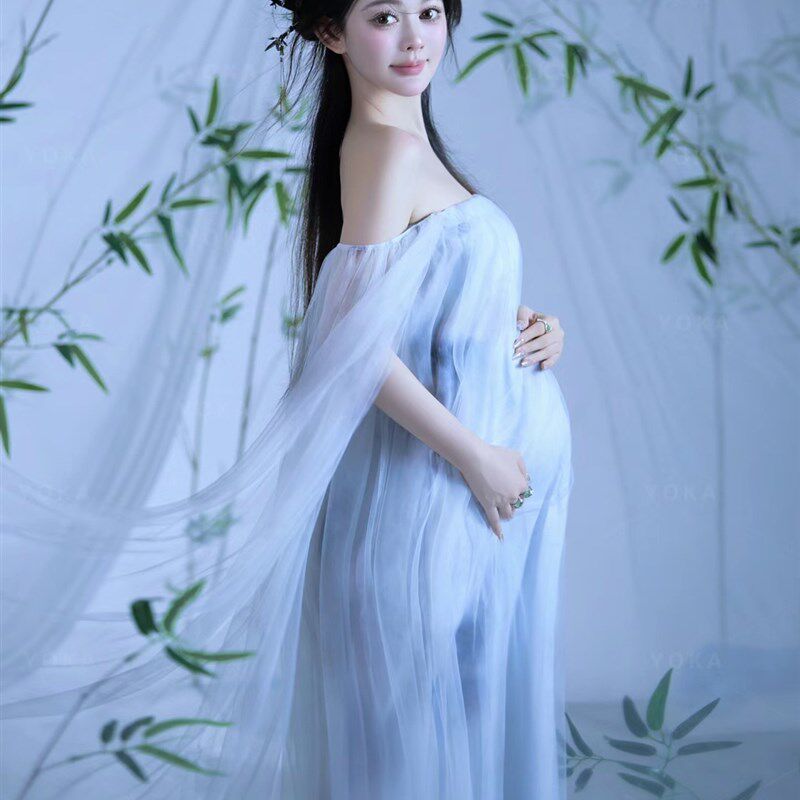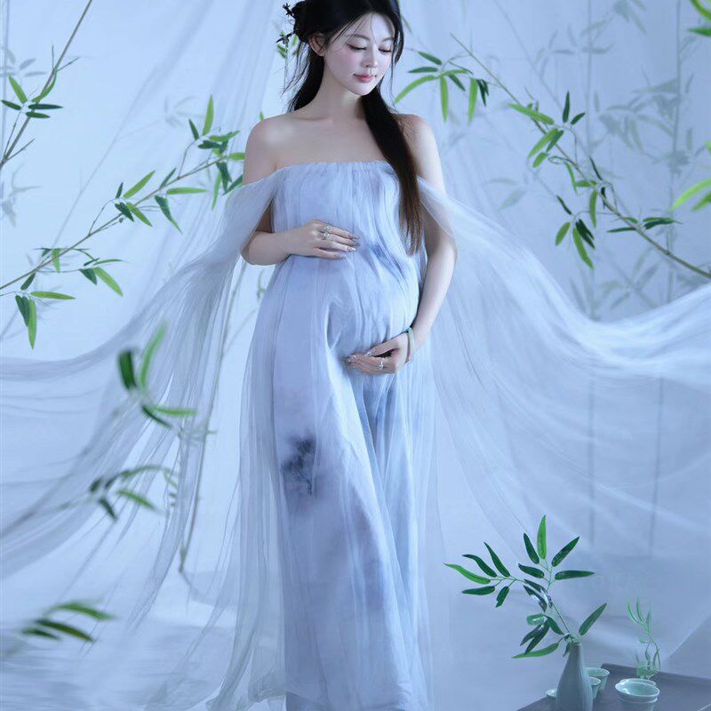 淘宝影楼孕妇拍照服装新中式复古水墨画抹胸裙礼服孕期妈咪艺术照服装