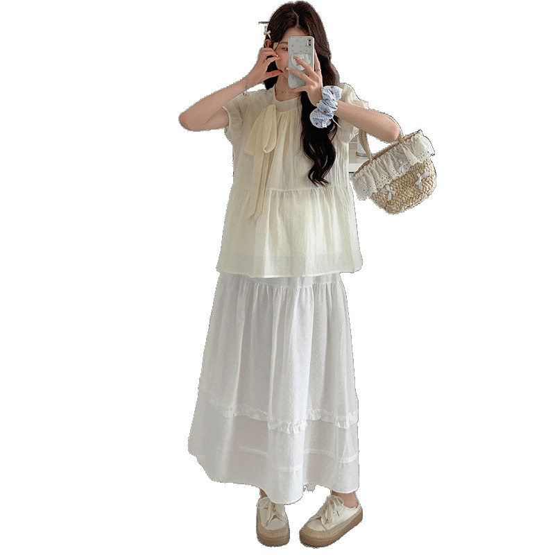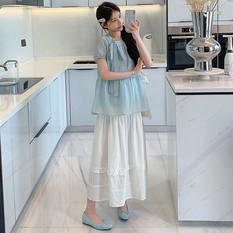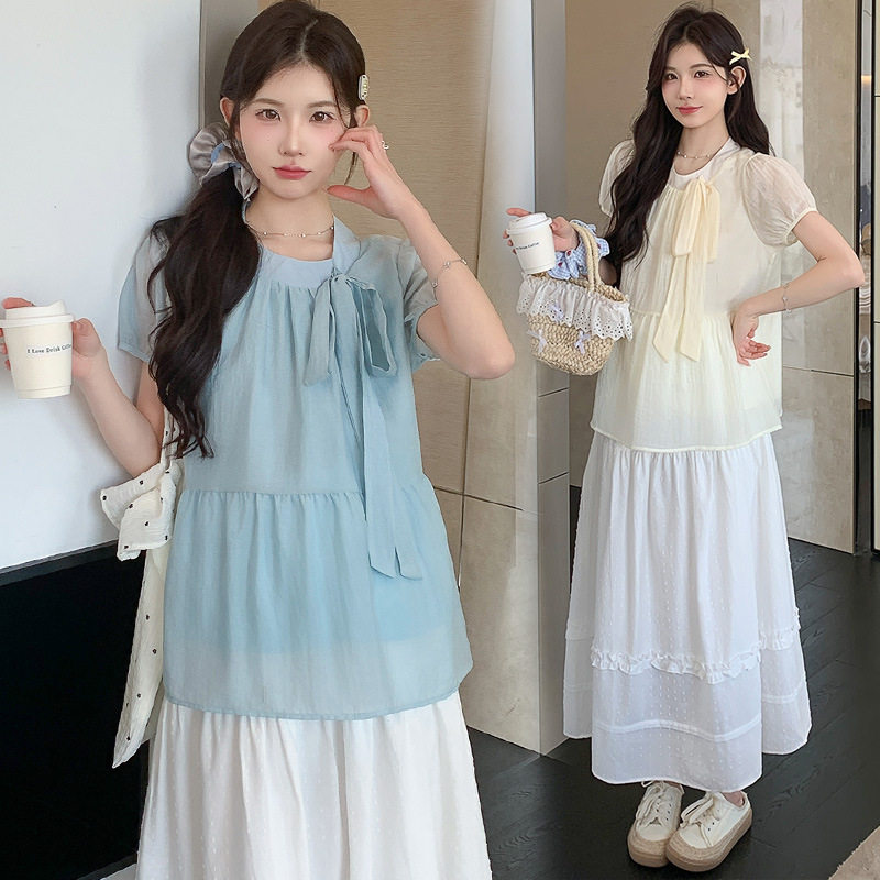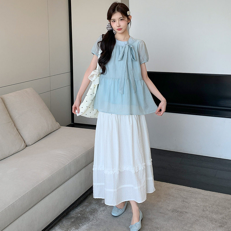 淘宝孕妇装2025夏季新款小个子甜美减龄娃娃衫上衣半身裙孕妇两件