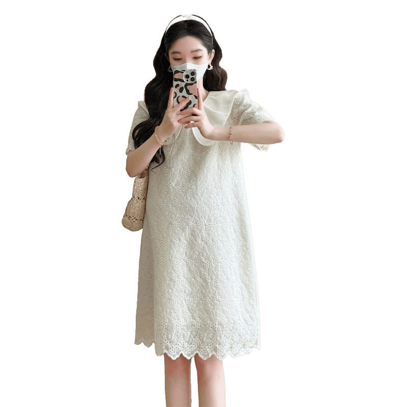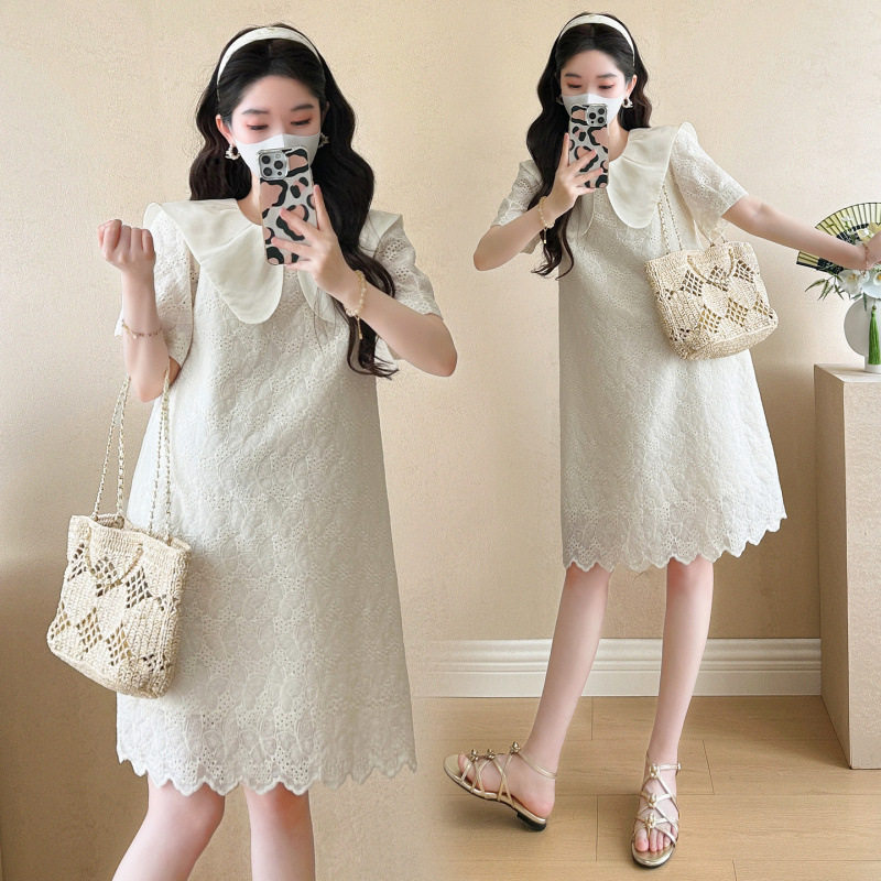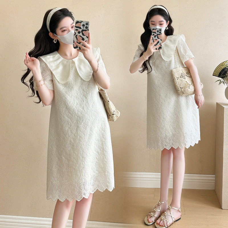 淘宝孕妇装2025夏季新款小个子蕾丝刺绣甜美娃娃领减龄小个子连衣裙