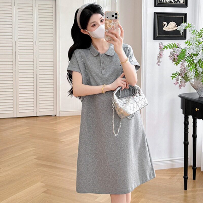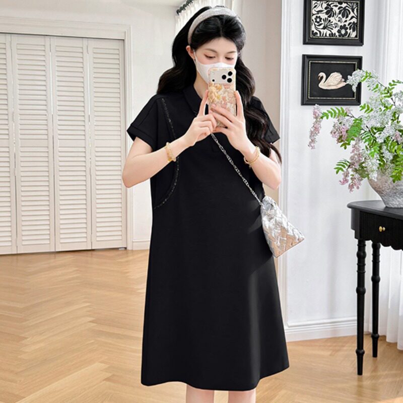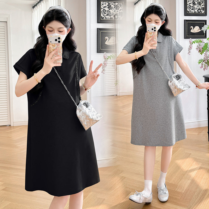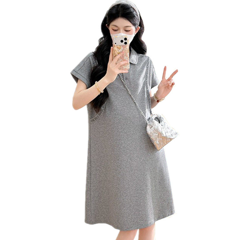 淘宝孕妇装夏装简约休闲短袖翻领连衣裙宽松大码显瘦裙子夏季孕妇裙夏