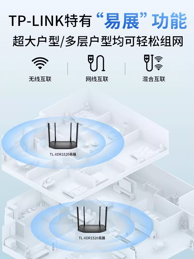 天TP-LINK TL-XDR1520易展版 千兆双频WiFi6家用无线路由器1500M大户型Mesh无缝组网全屋覆盖网络信号发射器