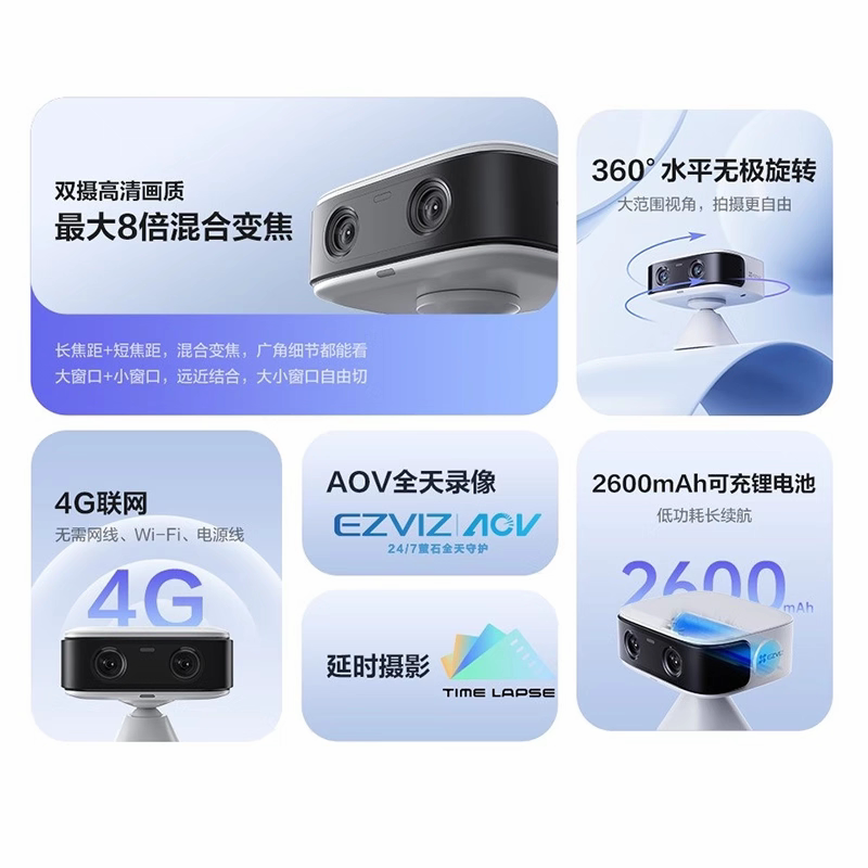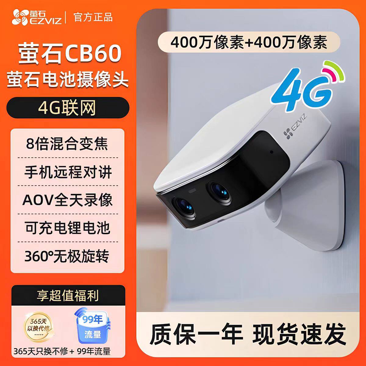 淘宝萤石免插电CB60电池4G双摄超清变焦摄像头无限免费流量磁吸款CB1