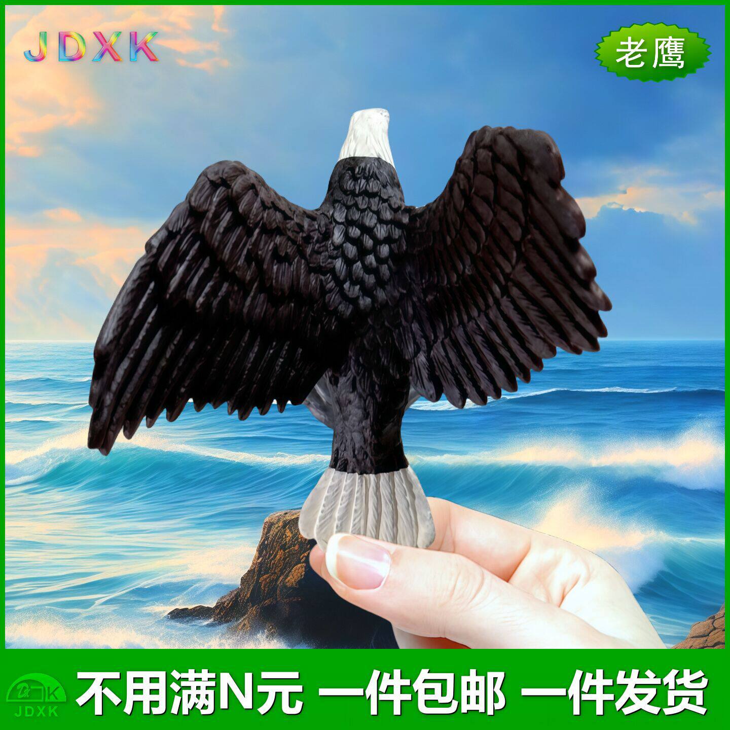 淘儿童认知仿真动物模型玩具实心静态塑胶鸟类展翅老鹰海雕盆栽摆件