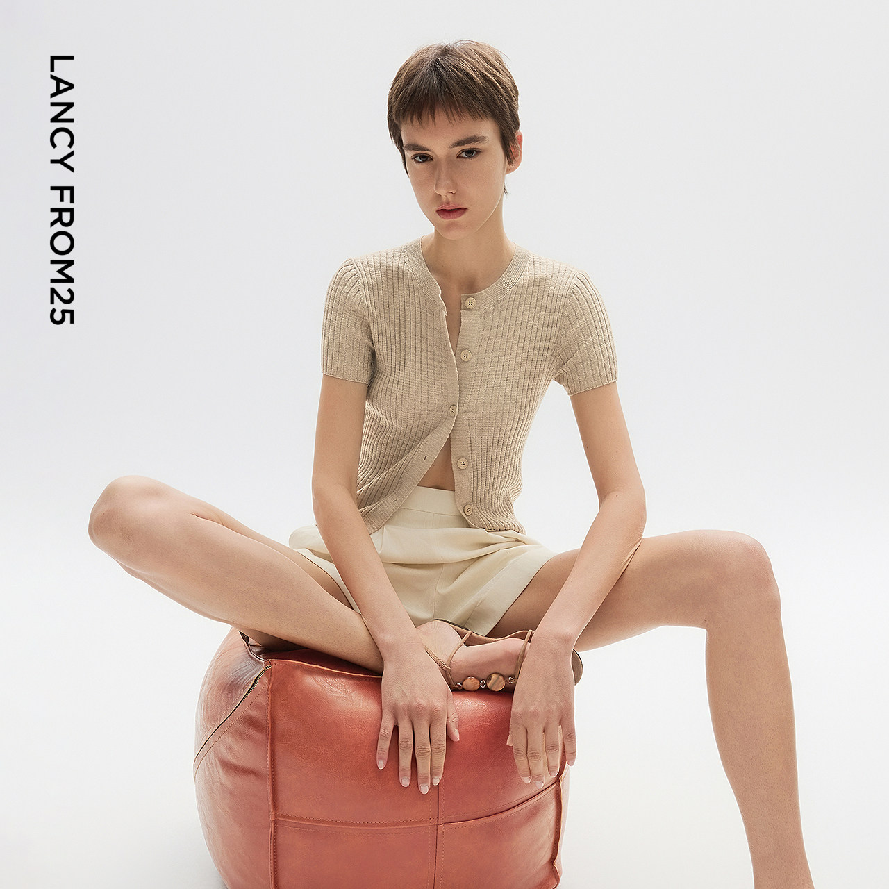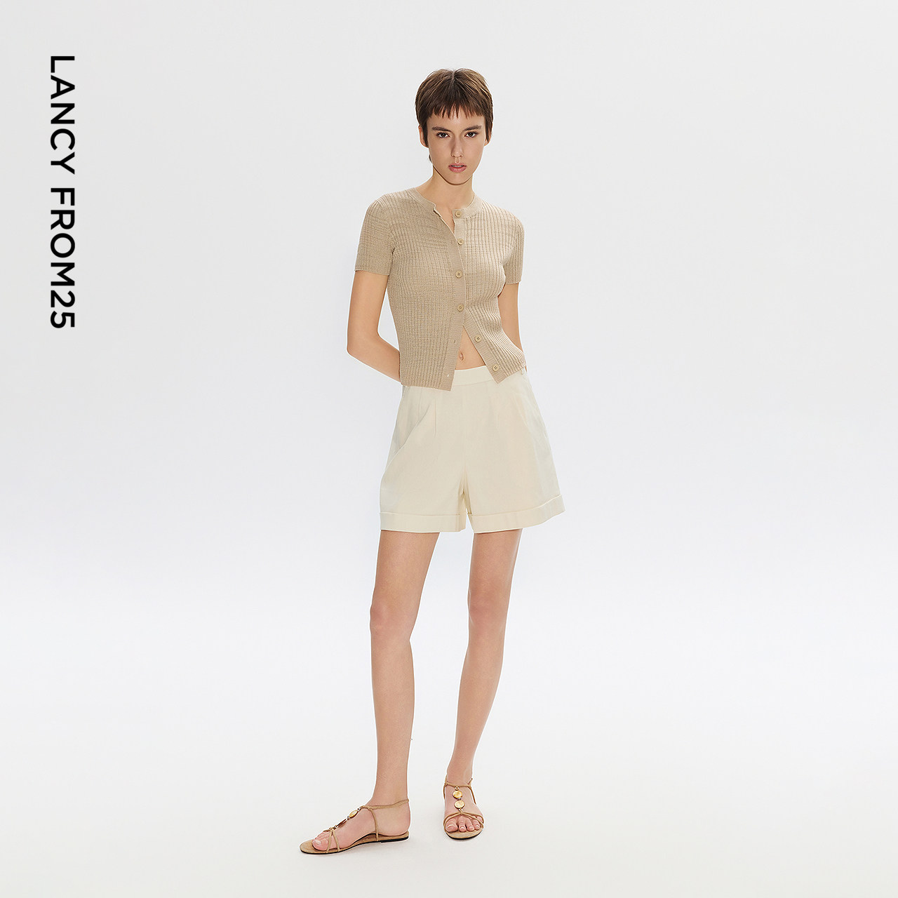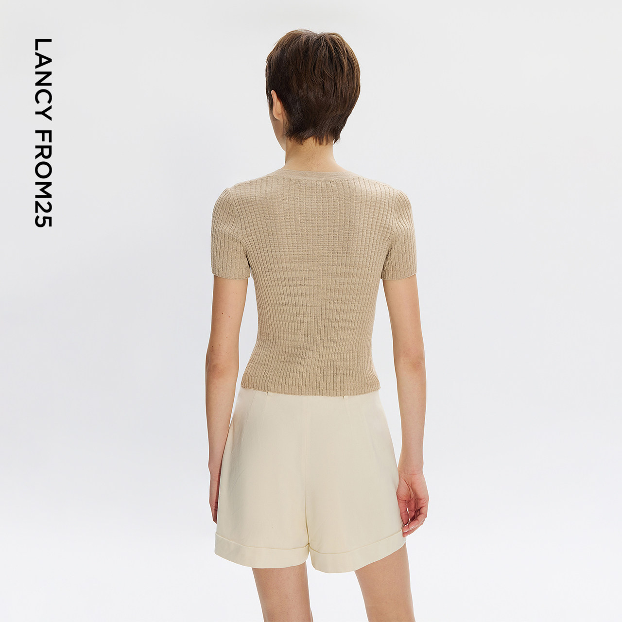 天猫朗姿25高级感简约针织衫小衫短袖亚麻修身针织开衫高级夏季新款女