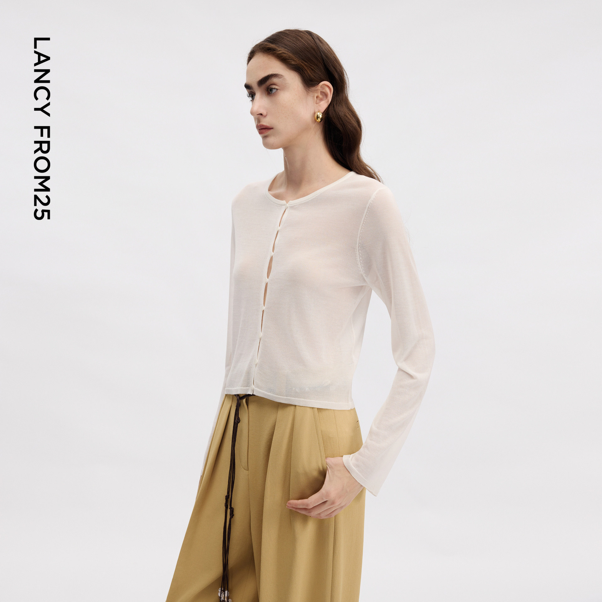 天猫朗姿欧洲EiLEEN ELITEE三醋酸天丝长袖针织开衫2025年夏季新款女