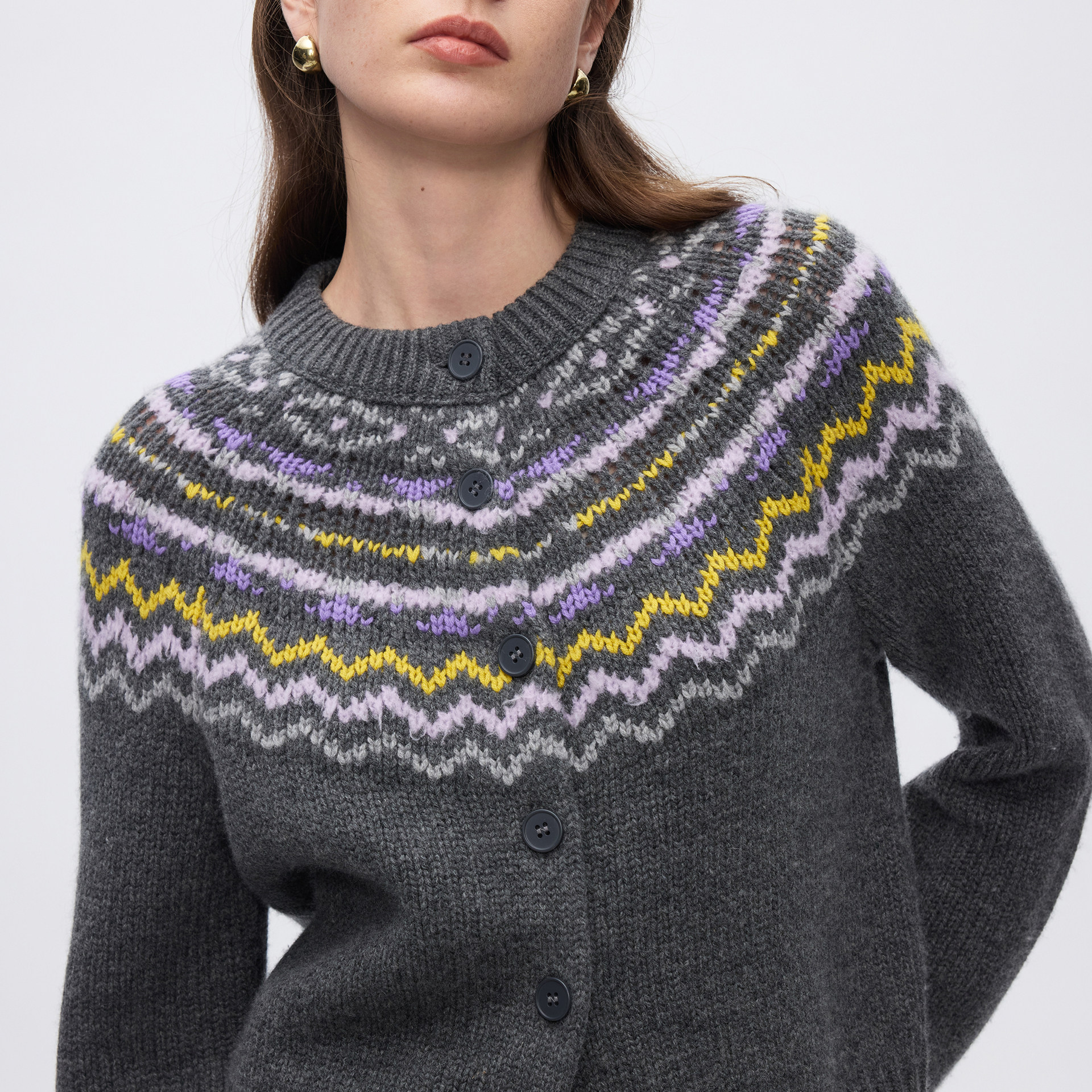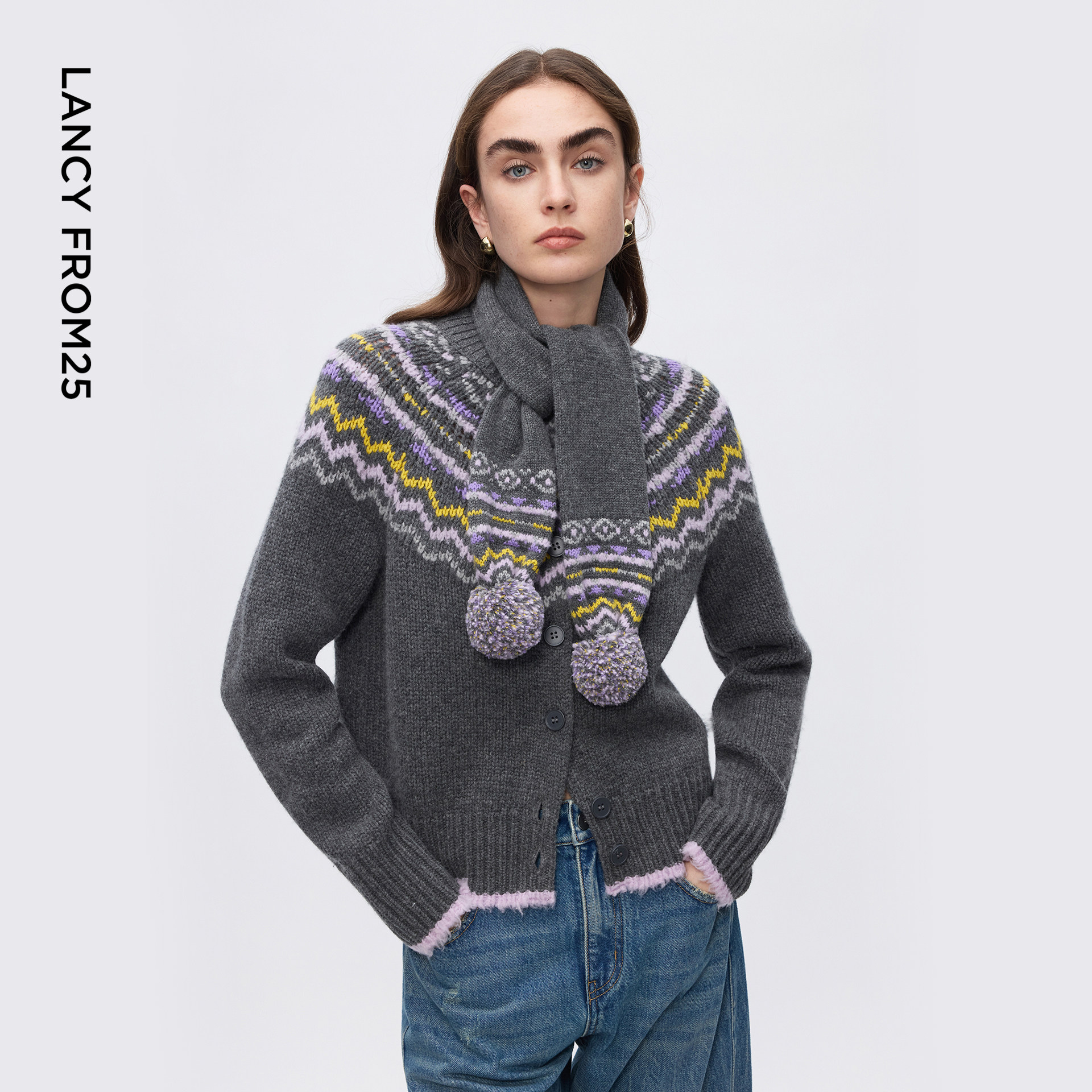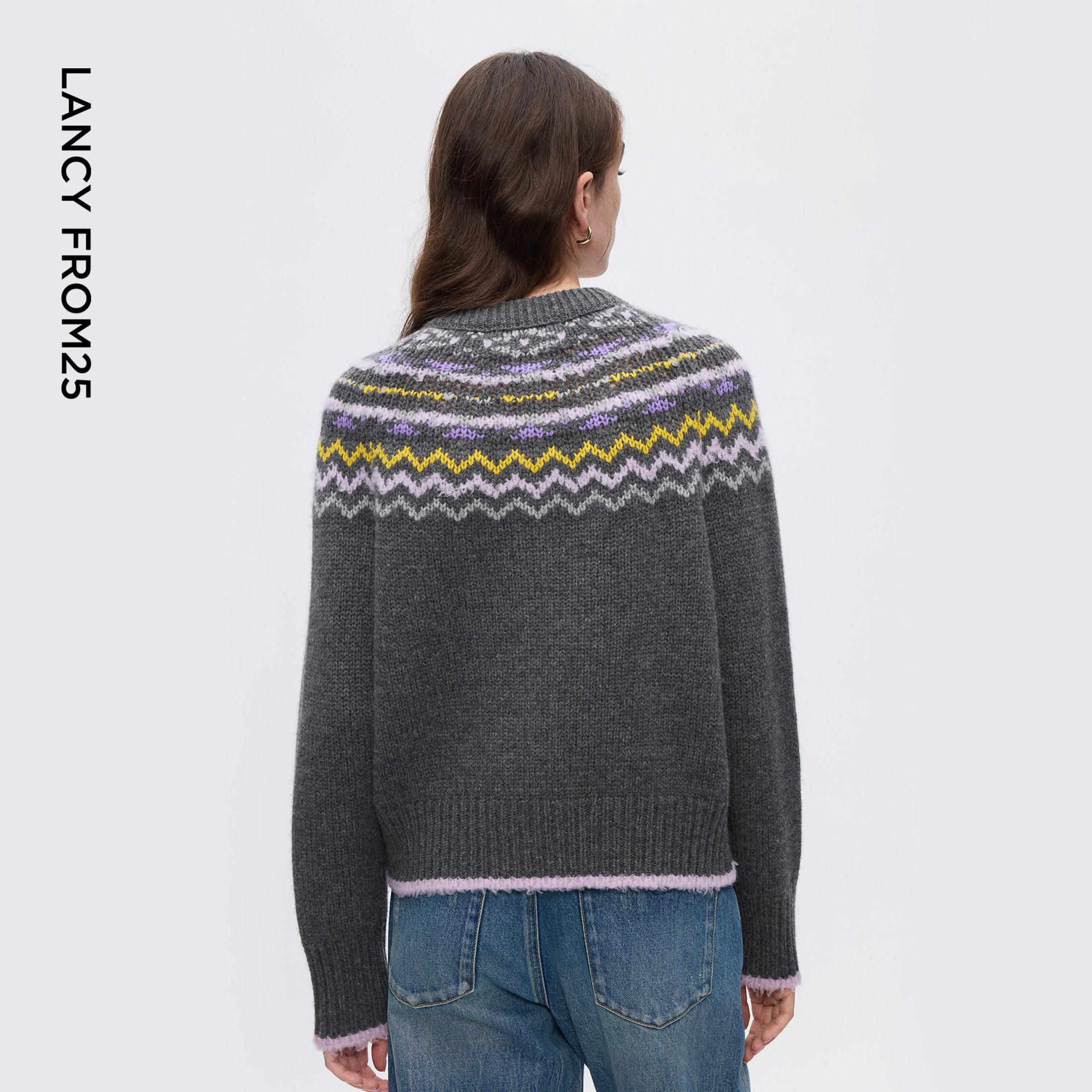 天猫【王楚然同款】朗姿羊毛圆领费尔岛毛针织衫毛衣女2025年冬季新款