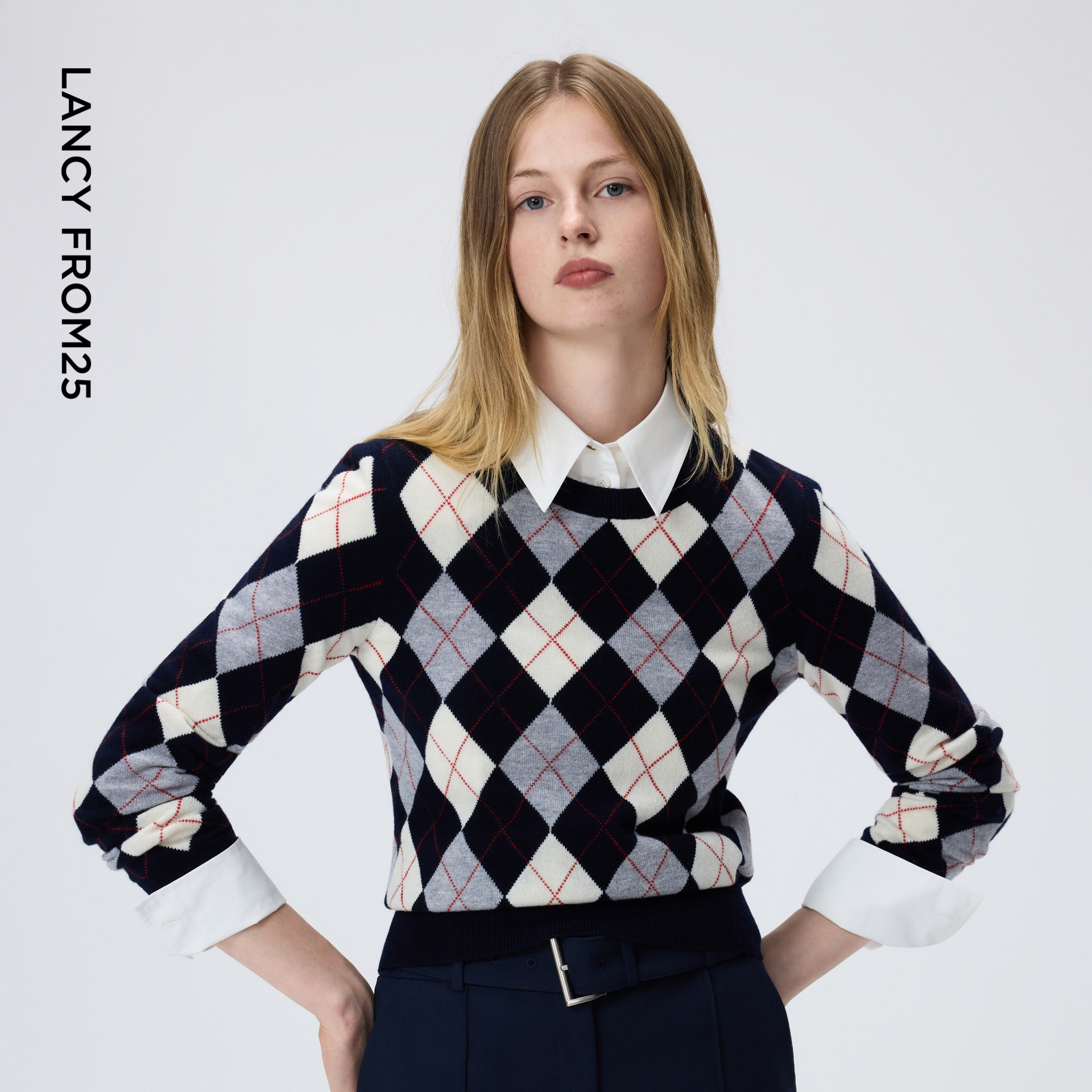 朗姿2026年春季新款纯羊毛菱格纹撞色针织衫,以经典英伦风格为灵感,融合现代时尚剪裁,打造优雅知性气质。精选优质纯羊毛面料,柔软亲肤,保暖透气,适合春季叠穿。立体菱格纹设计与大胆撞色拼接,打破单调,彰显复古摩登感。宽松版型搭配精致罗纹袖口与下摆,轻松内搭衬衫或外披大衣,层次感十足。无论是通勤还是休闲场合,都能展现女性独特魅力。这款针织衫不仅是对品质的坚持,更是对经典美学的重新诠释,是2026年春季衣橱不可或缺的时尚单品。
