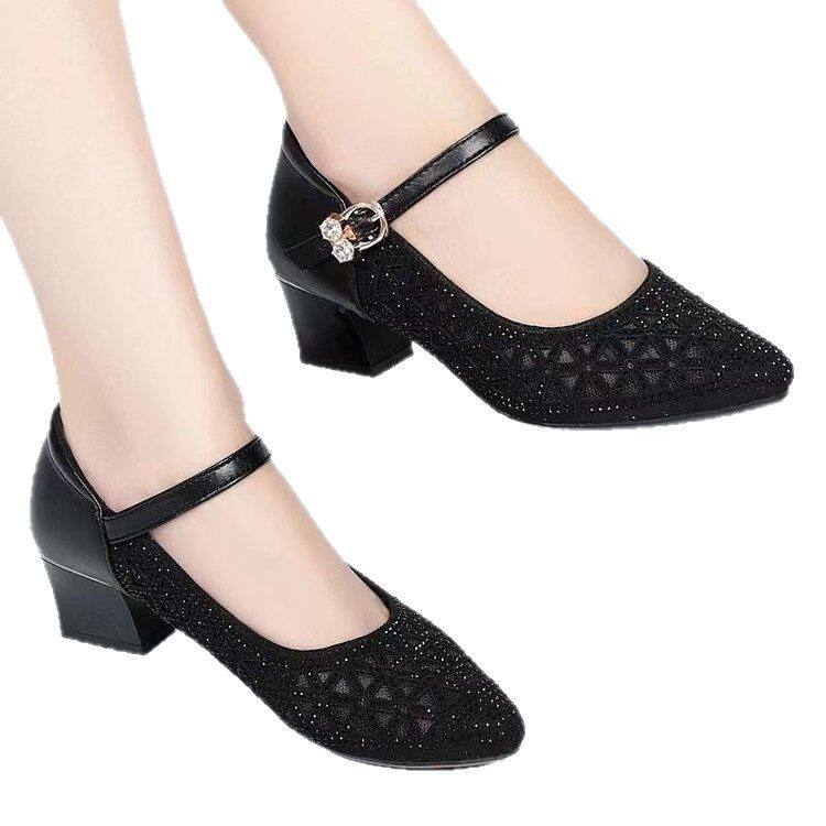 淘宝透气2025凉鞋跳舞新款时尚粗跟夏季凉鞋网纱单鞋女鞋低跟妈妈镂空
