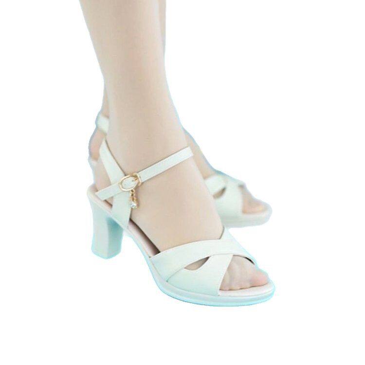 淘孙艺珍同款2026新款粗跟方头一字带凉鞋女夏真皮交叉带罗马高跟鞋